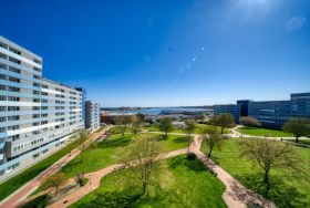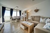 Genießen Sie Ihren Urlaub in dieser liebevoll ausgestatteten Ferienwohnung im Haus F des Ferienparks Heiligenhafen. Auf rund 45?m² Wohnfläche bietet die Wohnung in der 6. Etage alles, was Sie für entspannte Urlaubstage benötigen. Vom Balkon zur Ostseite aus genießen Sie einen Panoramablick auf die Ostsee mit Fehmarnsundbrücke, den Binnensee, die Stadt und den Yachthafen.