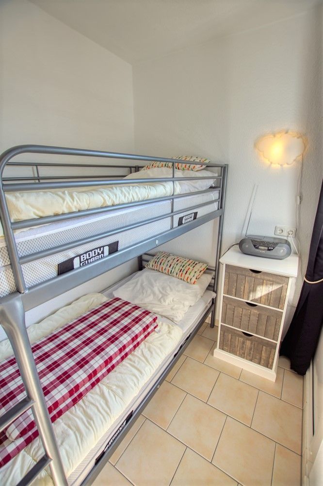 Separates Kinderzimmer mit Etagenbett (90x200), eigenem TV und Verdunklungsmöglichkeit