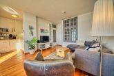 Heller Wohnbereich mit großem Sofa, großzügigem Flachbild-TV und gemütlicher Atmosphäre