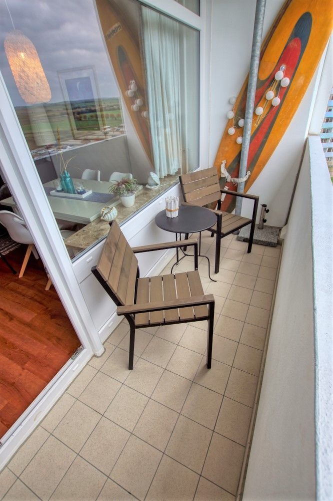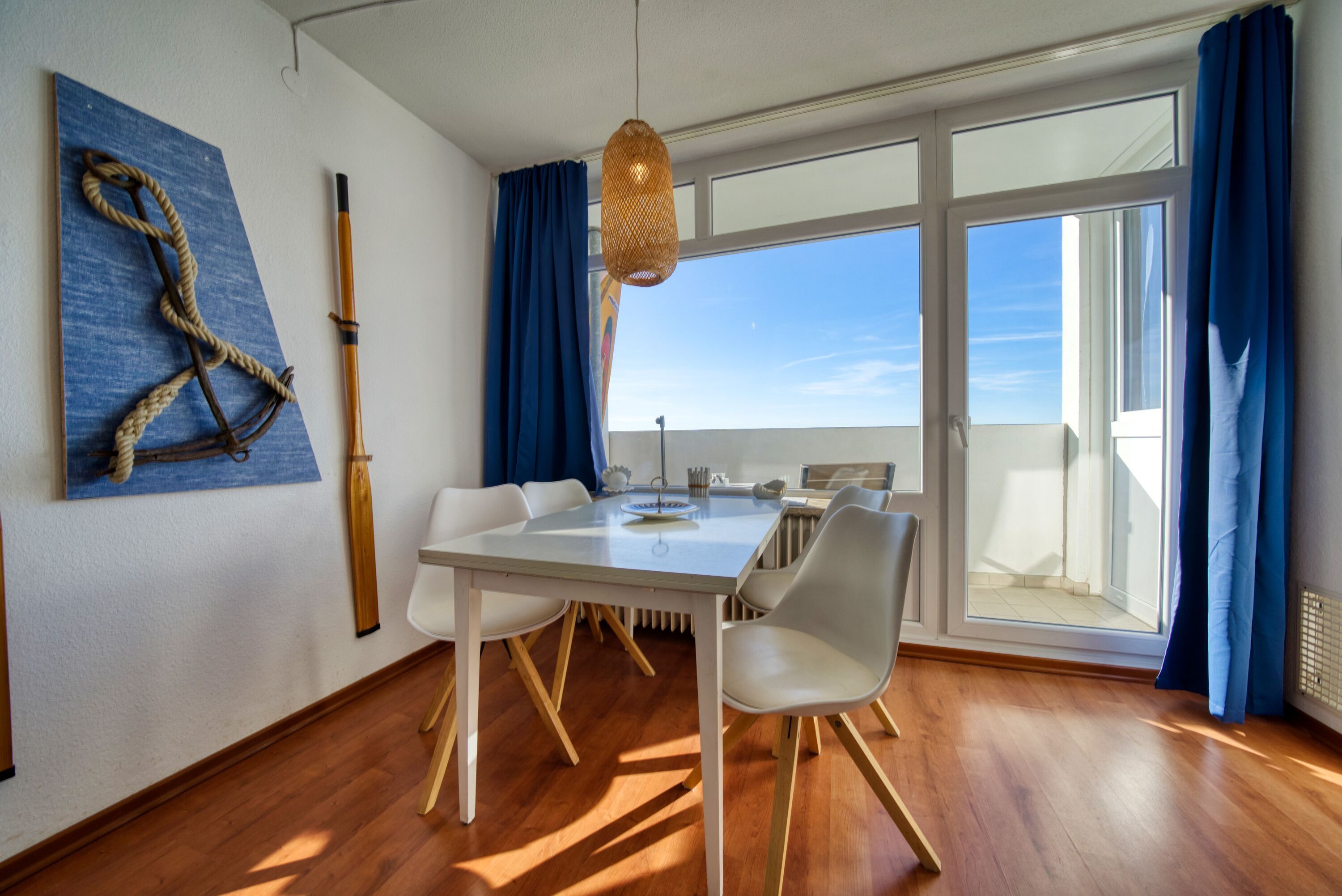 Diese neu ausgestattete Ferienwohnung in der 7. Etage im Haus F des beliebten Ferienparks Heiligenhafen bietet auf 45?m² Wohnfläche ein helles, maritimes Ambiente und genügend Platz für die ganze Familie. Der sonnige Balkon zur Westseite ermöglicht einen unvergesslichen Blick auf die Ostsee und den Leuchtturm inklusive traumhafter Sonnenuntergänge!