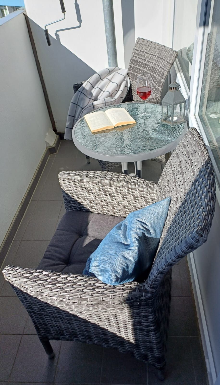 Balkon mit Gartenmöbeln und Sonnenmarkise