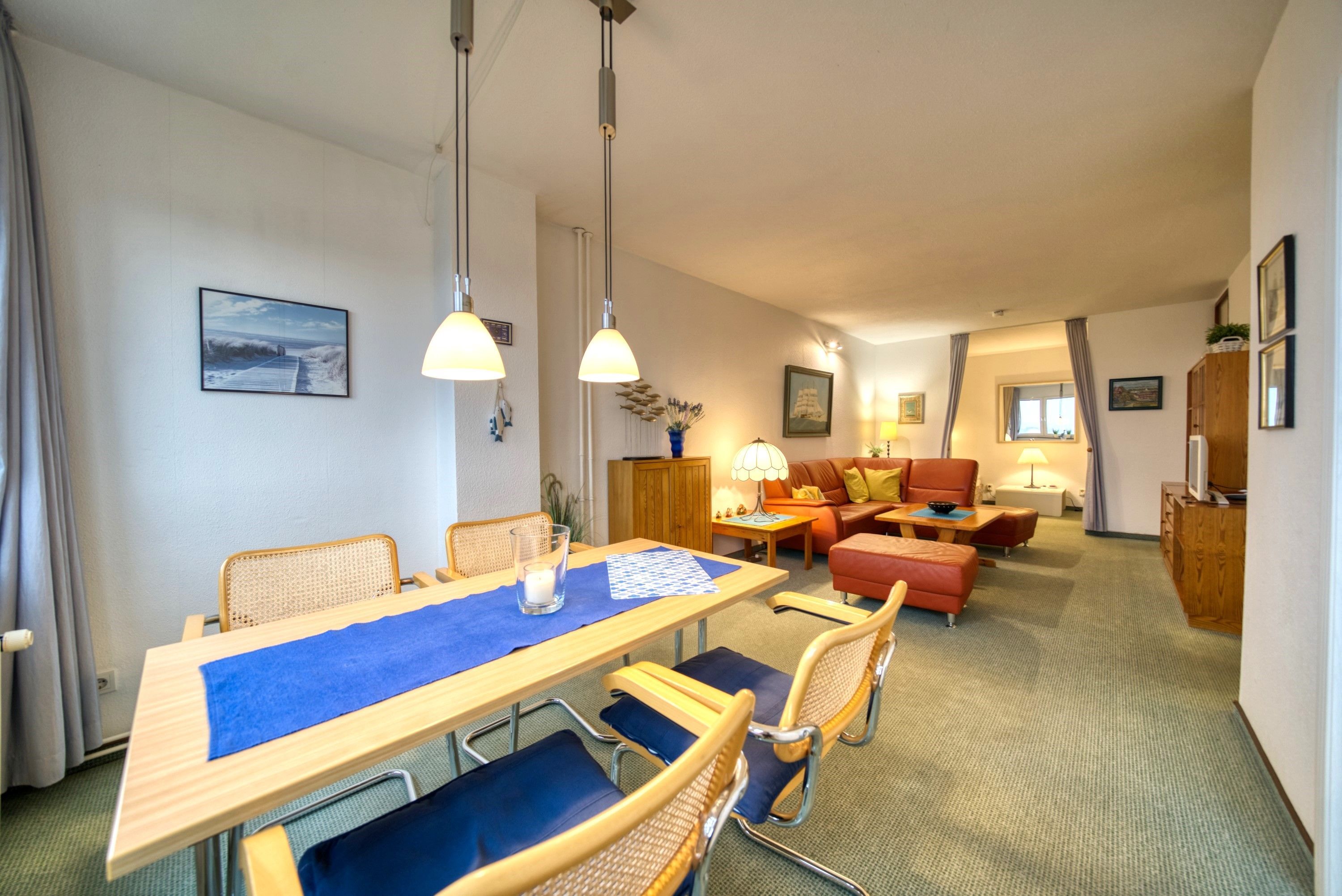 Wohn-/Esszimmer mit gemütlichem Sitzbereich und Flachbild-TV