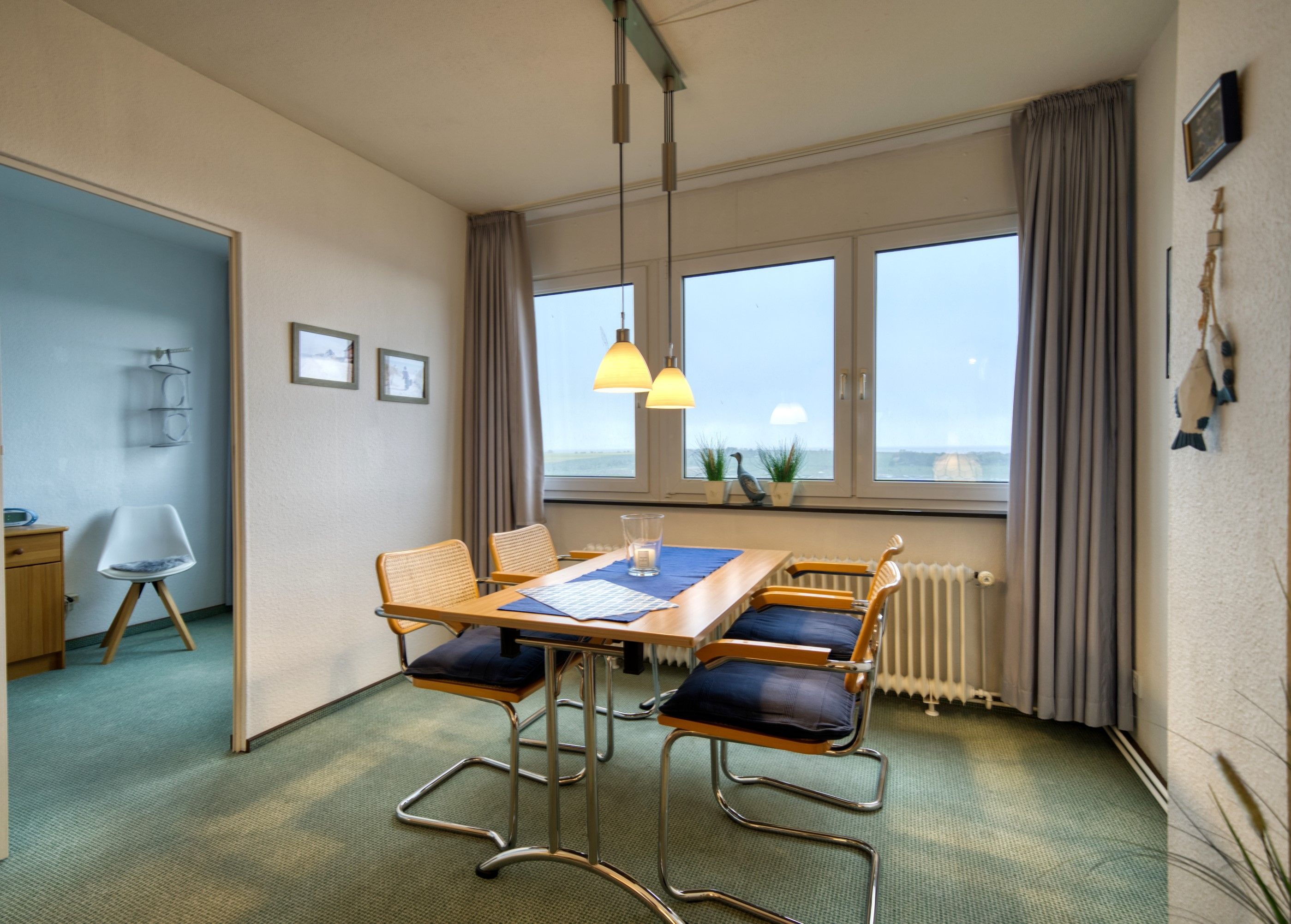 Diese großzügige Ferienwohnung in der 9. Etage des Hauses F im Ferienpark Heiligenhafen überzeugt mit einem traumhaften Blick auf die Ostsee und die Salzwiesen – ganz ohne Balkon, aber mit beeindruckender Weitsicht und viel Platz im Inneren auf 53?m² Wohnfläche. Ideal für einen erholsamen Urlaub zu dritt.