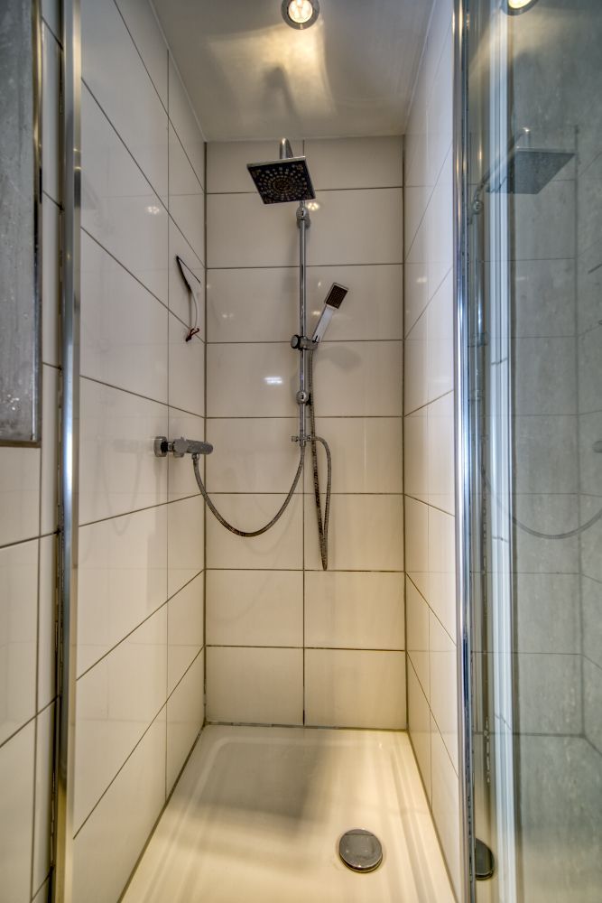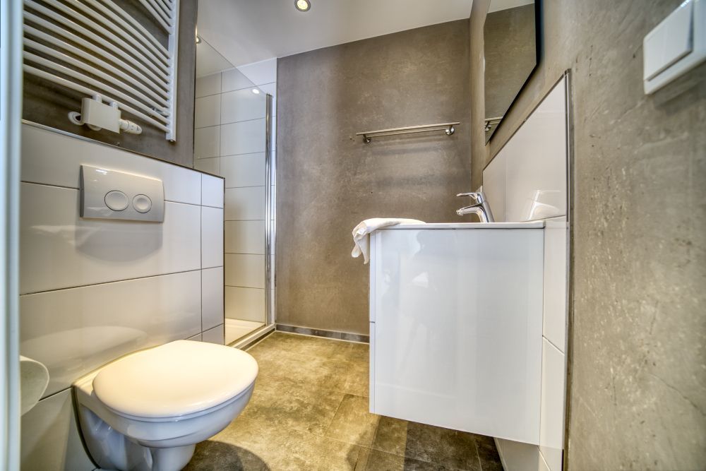 modernes Badezimmer mit großzügiger Dusche und neuwertiger Ausstattung
