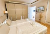 Das großzügige Schlafzimmer bietet ein hochwertiges Boxspringbett, einen Schiebetürenschrank und einen weiteren Flachbild-TV.
