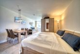 31m² Wohnfläche mit Wohn-Schlafbereich, der Doppelbett und eine Schlafcouch umfasst