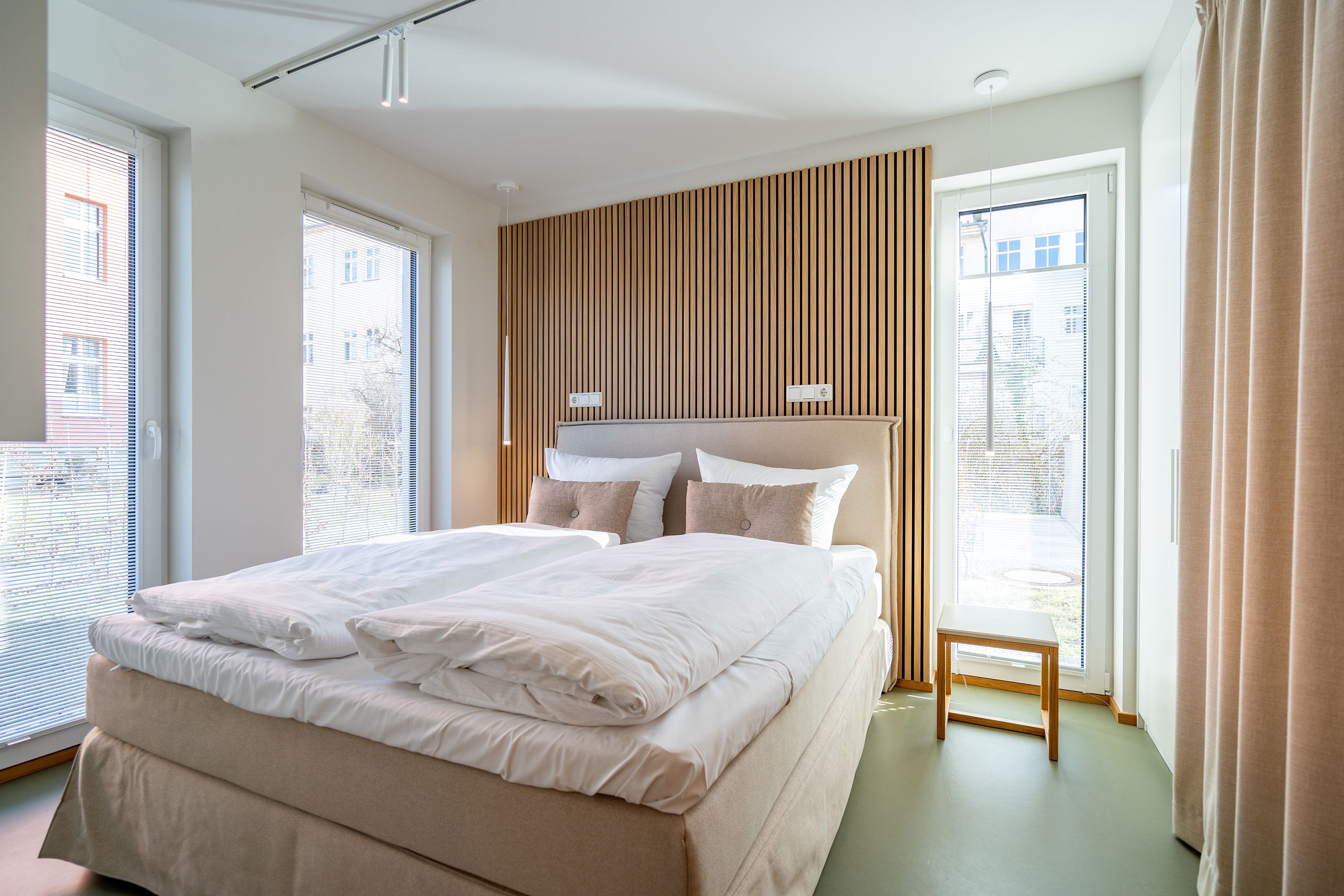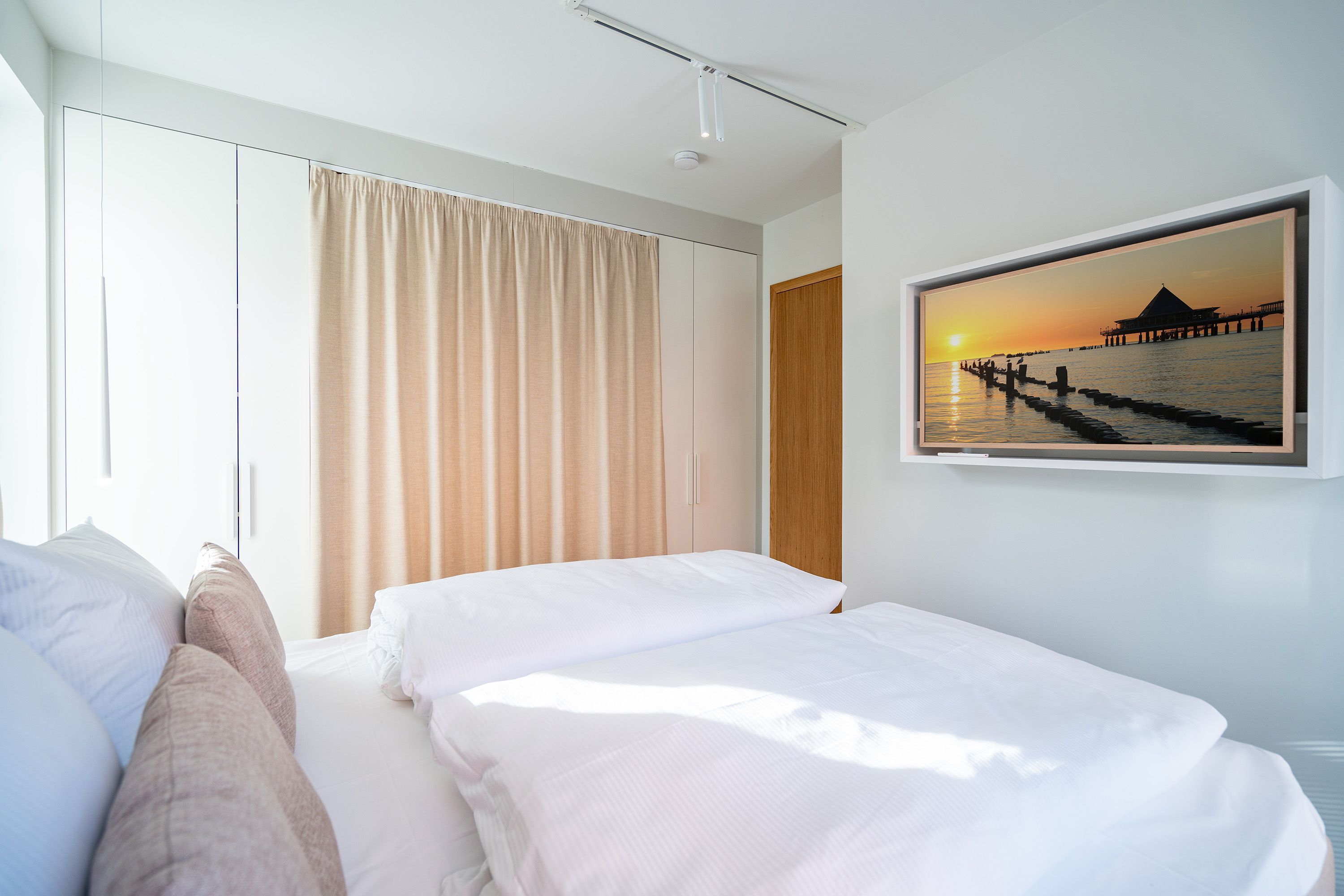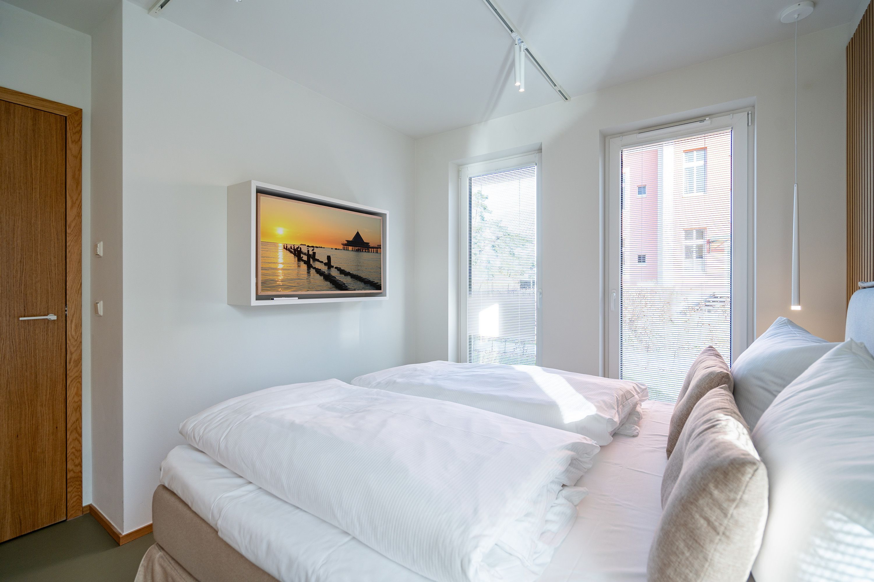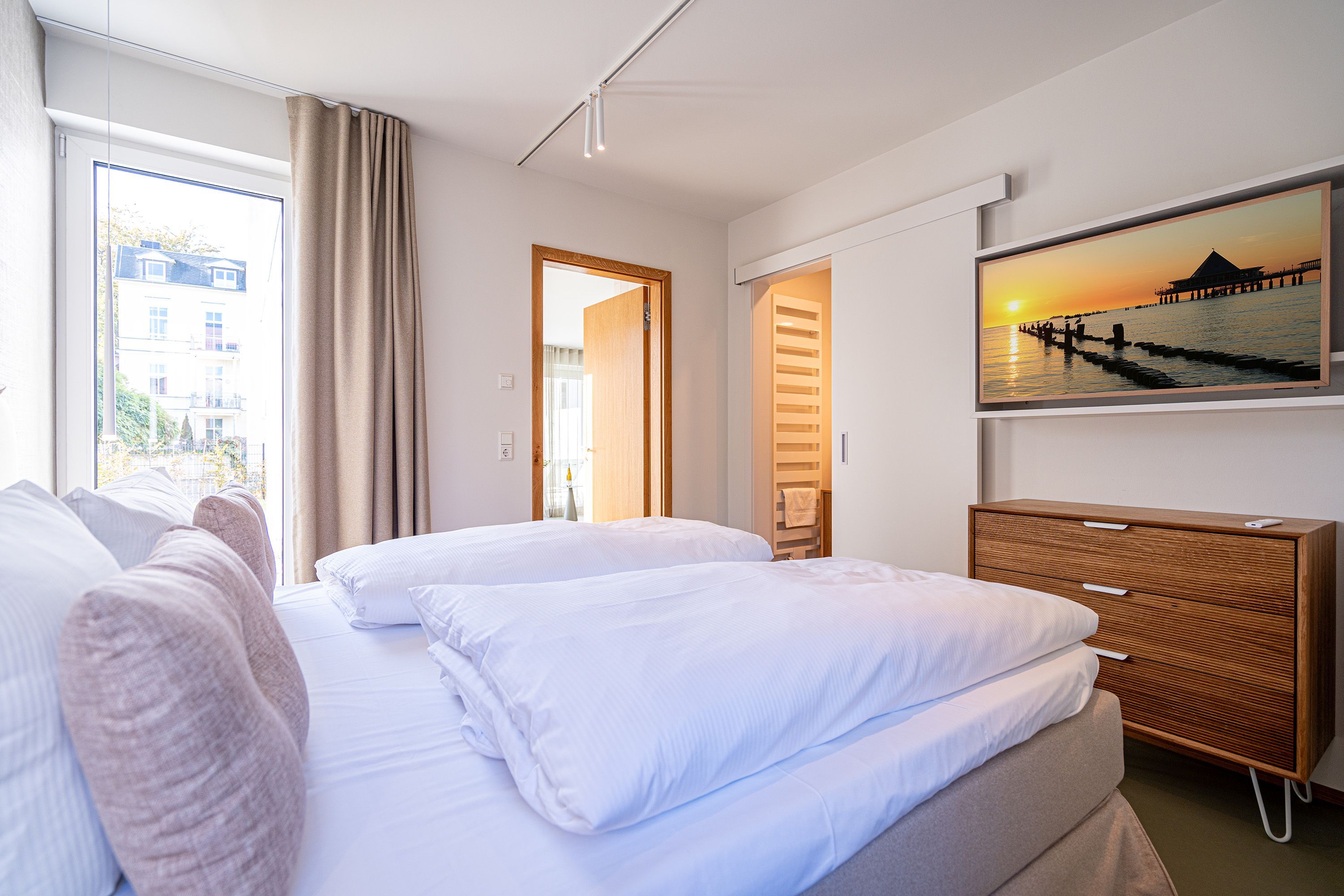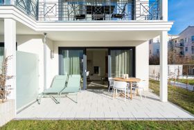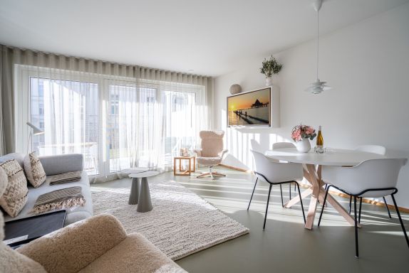 Nur 50m vom Strand entfernt und in einer kleinen Nebenstraße gelegen, empfängt Sie unser neues Domizil Quartier am Strand. Als zweites Objekt am Platz direkt an der schönen Strandpromenade gelegen, fügt sich die Anlage stilvoll zwischen Bäderstilvillen und Strandumgebung ein. Die insgesamt 9 Appartements und 2 Penthouses verfügen über helle und modern eingerichtete 2 bis 3 Zimmer. An kühleren Tagen sorgen Saunen und Kamin, die zu jedem Appartement gehören, für Entspannung in Ihrem Urlaub. Dem Klang der Wellen können Sie bequem von den Terrassen, Balkonen und Dachterrassen aus zuhören, denn jedes Appartement besitzt einen separaten Außenbereich. Der Blick auf die Ostsee ist Ihnen aus einigen Appartements möglich, aus den Penthouses garantiert. Offene Wohnbereiche und voll ausgestattete Küchen komplettieren das neue Objekt Quartier am Strand. Zudem gibt es eine hauseigene Tiefgarage (Einfahrthöhe 2,05 m) sowie einen Außenstellplatz (für Appartement 3), so dass ein eigener PKW-Stellplatz garantiert ist. Zu den weiteren Annehmlichkeiten des Objektes zählt ein Fahrstuhl, der Sie von der Tiefgarage bequem bis in die Etage Ihres Urlaubsdomizils leitet. Kostenfreies W-Lan rundet das Domizil ab. Wir wünschen Ihnen einen schönen Urlaub!