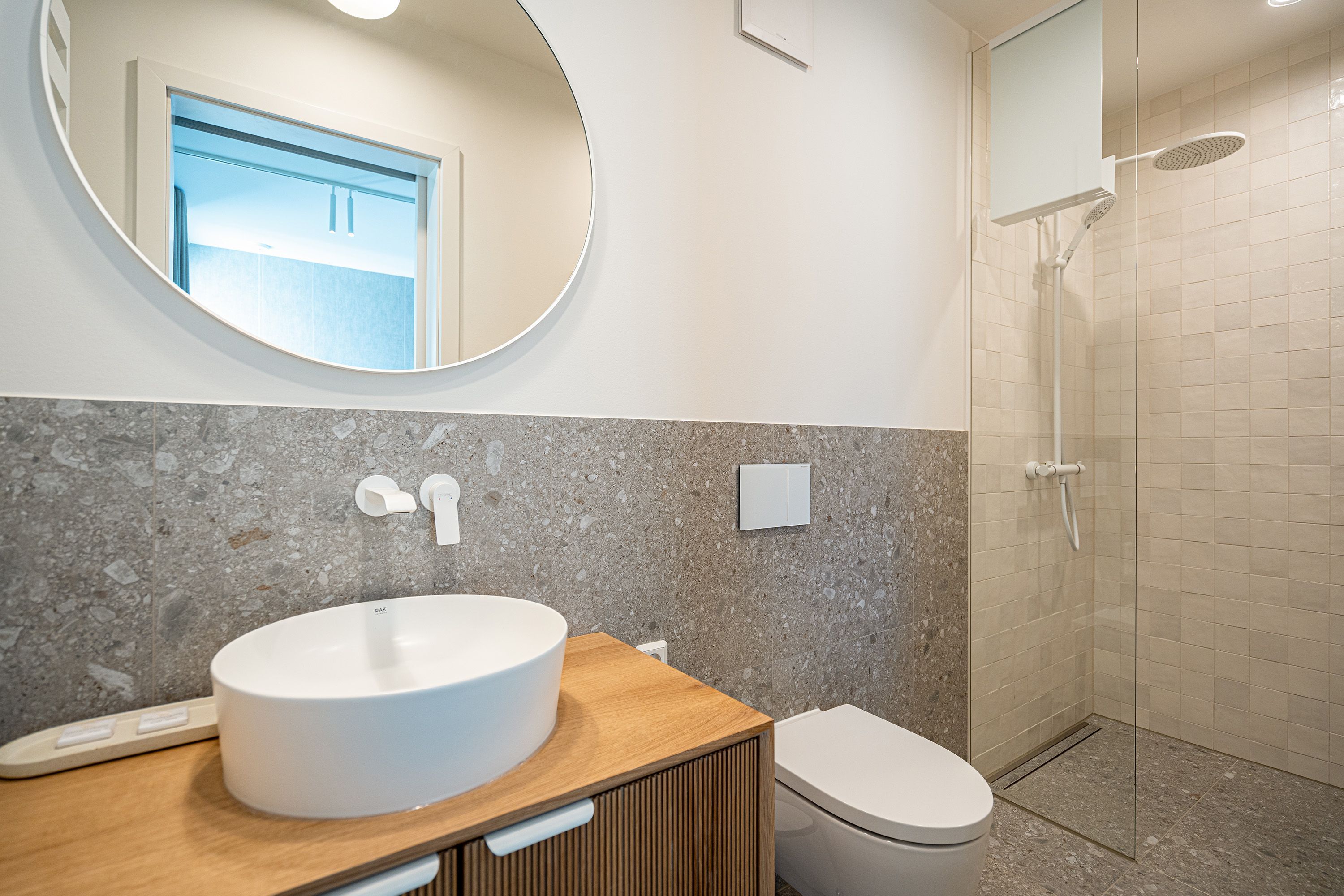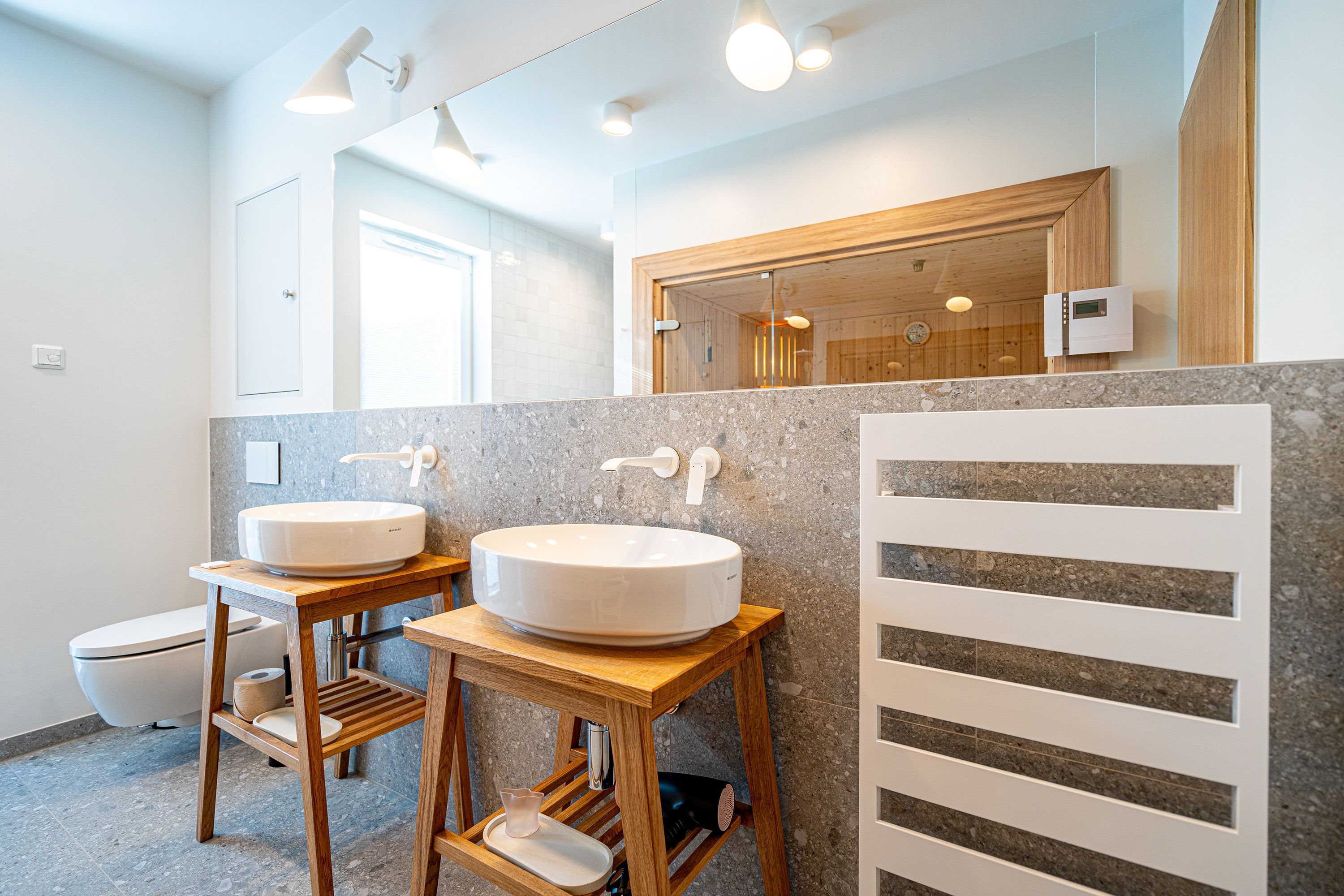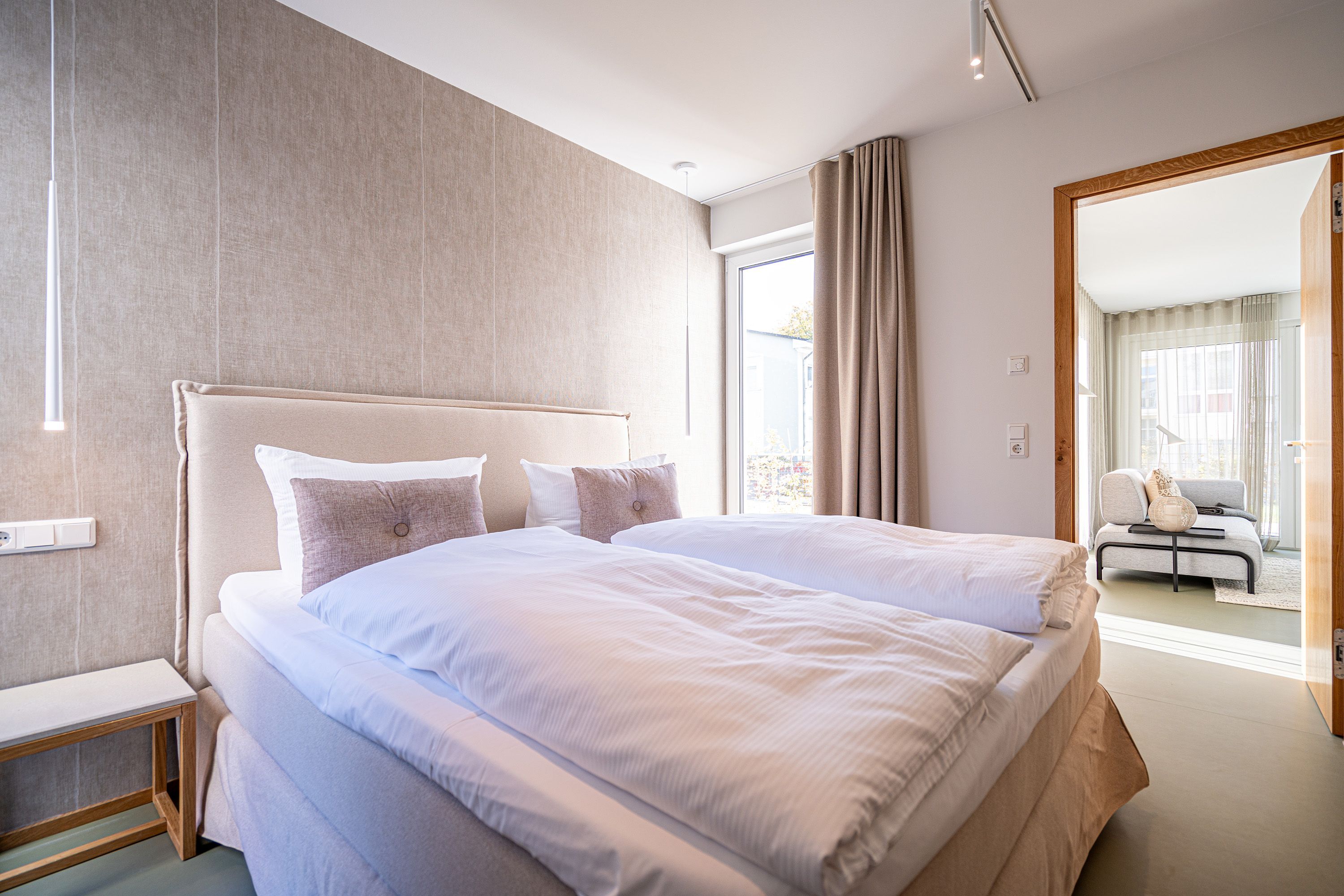 Herzlich willkommen in der hellen und modernen 3-Raum-Ferienwohnung Nr. 03 im Erdgeschoss, die Platz für bis zu 4 Personen bietet. Mit einer großzügigen Fläche von 87 Quadratmetern erwartet Sie hier ein komfortables Urlaubserlebnis. Der offene Wohnbereich empfängt Sie mit einer gemütlichen Sitzgruppe, einem Flachbildfernseher und einem Kaminofen, der für eine behagliche Atmosphäre sorgt. Von hier aus haben Sie direkten Zugang zur 15 Quadratmeter großen Süd-West-Terrasse, auf der Sie die Sonne und frische Luft genießen können. Ein Essplatz für 4 Personen lädt zu geselligen Mahlzeiten ein. Die voll ausgestattete Küchenzeile bietet alles, was Sie für die Zubereitung von köstlichen Mahlzeiten benötigen, darunter einen Backofen mit integrierter Mikrowelle, einen Induktionsherd sowie Kühl- und Gefrierschrank. Die Wohnung verfügt über 2 Schlafzimmer, jeweils mit komfortablen Boxspringdoppelbetten (1,80m x 2,00m), geräumigen Kleiderschränken und Flachbildfernsehern für Ihre Unterhaltung und Entspannung. Für Ihr Wohlbefinden sorgt ein innenliegendes Masterbad mit Dusche, Waschtisch und WC. Zusätzlich steht Ihnen ein zweites Tageslichtbad zur Verfügung, das mit einer Dusche, einem Doppelwaschtisch, einer hochwertigen Massivholzsauna und einem WC ausgestattet ist. In einem separaten Hauswirtschaftsraum finden Sie eine Waschmaschine, die Ihnen während Ihres Aufenthalts zur Verfügung steht. Ein Außenstellplatz für Ihr Auto ist ebenfalls vorhanden, damit Sie bequem an- und abreisen können.