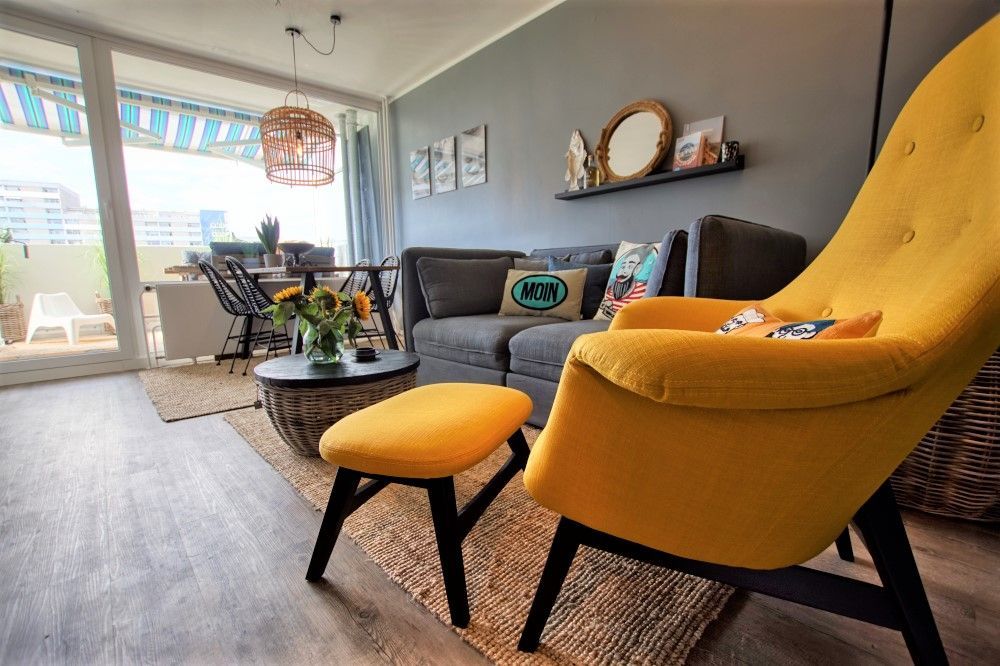 Diese moderne 52?m² große Ferienwohnung in der 3. Etage des Hauses O bietet komfortablen Platz für bis zu 4 Personen. Vom großzügigen Balkon mit Blick über den Innenhof Richtung Ostsee genießen Sie eine entspannte Urlaubsatmosphäre.