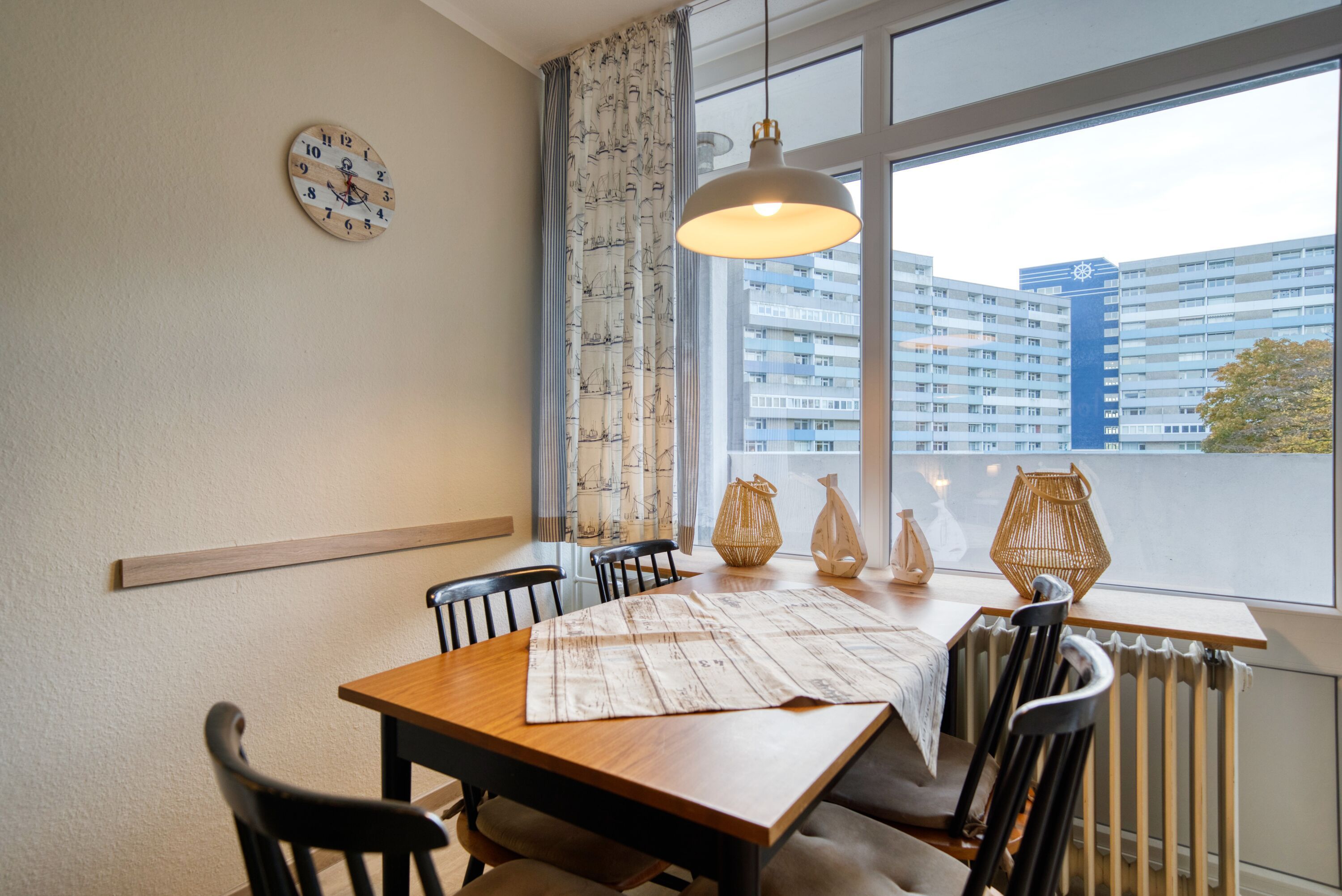 Diese gepflegte 2-Zimmer-Ferienwohnung im Haus Q des Ferienparks Heiligenhafen bietet auf 45?m² ausreichend Platz für bis zu 5 Personen und befindet sich in der 1. Etage bequem erreichbar über den Fahrstuhl. Der ruhige Balkon mit Blick auf den Innenhof lädt zu entspannten Stunden ein.
