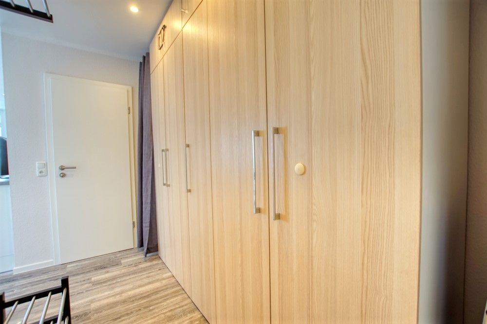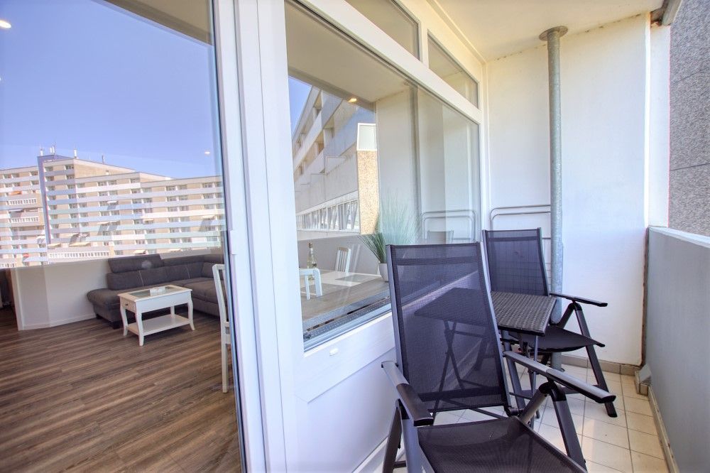 Diese renovierte Wohnung liegt im Haus N Ferienpark, in der 7. Etage, mit Balkon zum Innenhof, der einen schönen Blick auf die Grünanlagen und die Ostsee Richtung Fehmarn bietet.