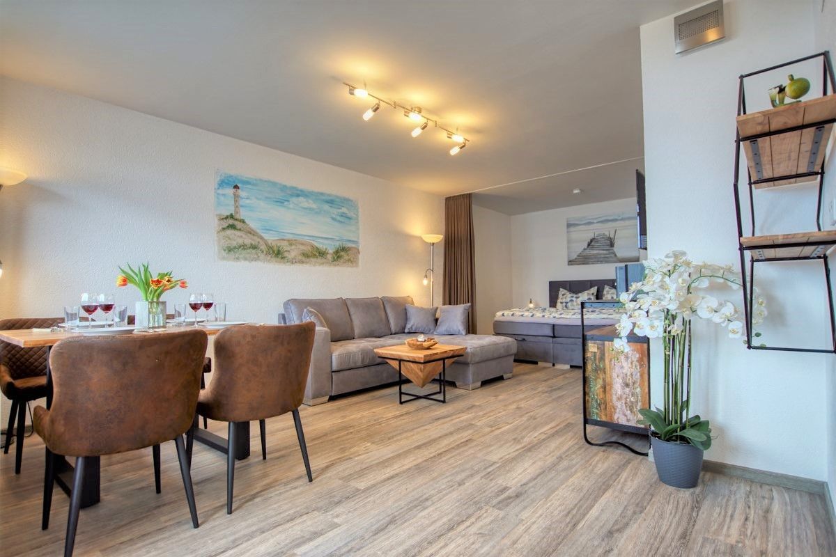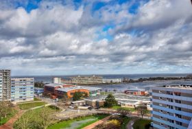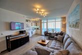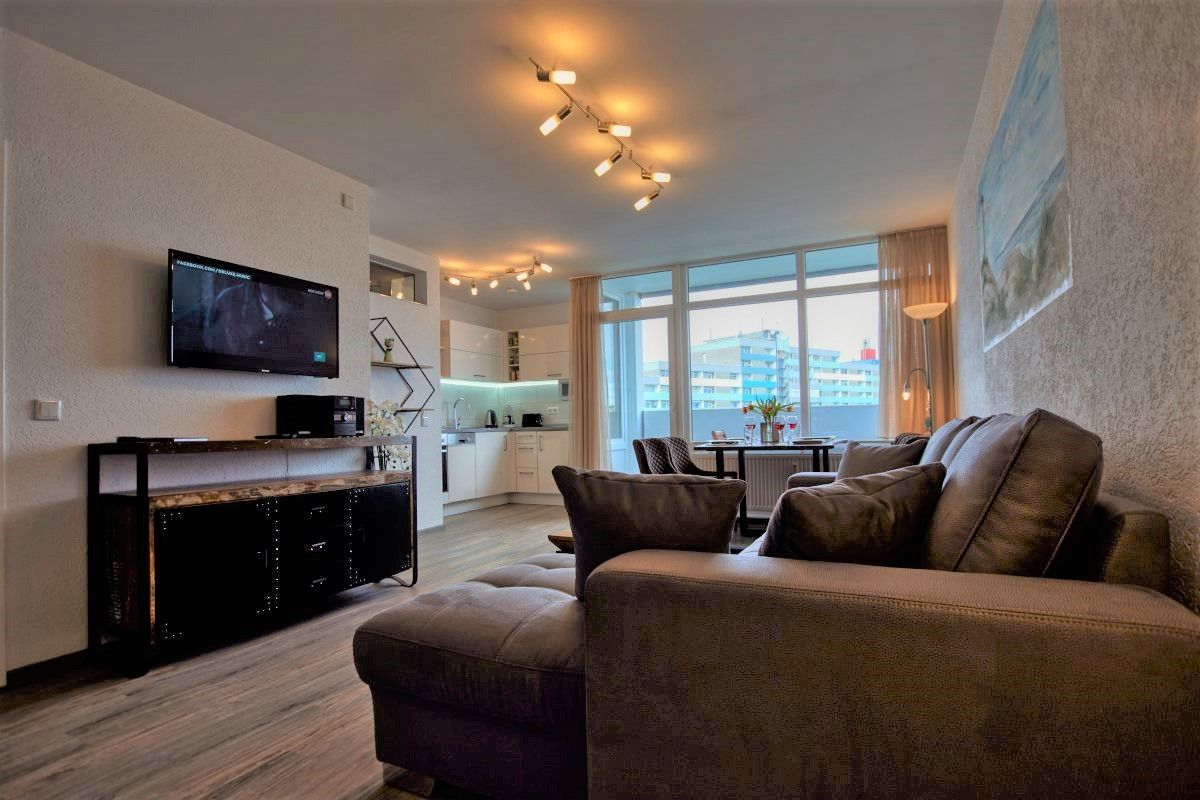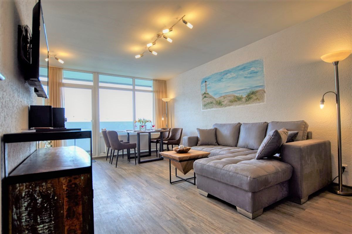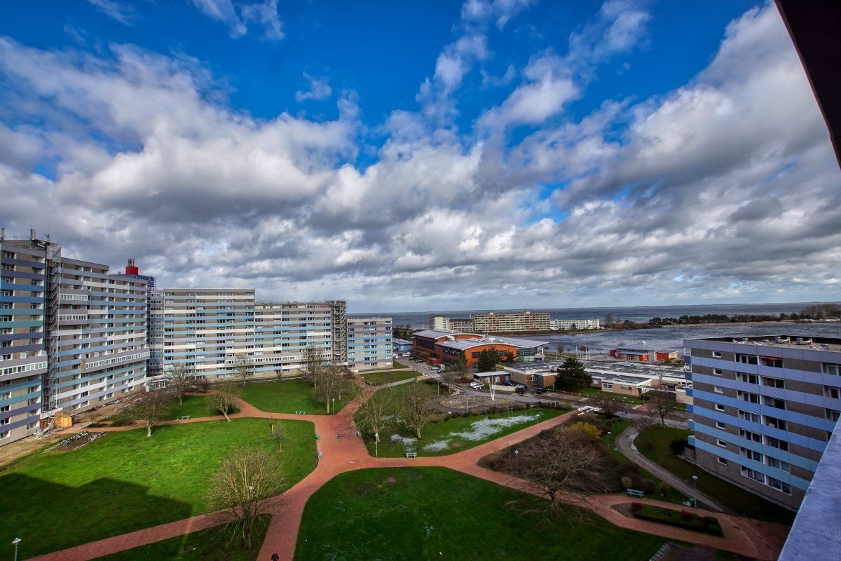 Die Wohnung liegt im Haus N Ferienpark, in der 9. Etage, mit Balkon zum Innenhof, der einen schönen Blick auf die Grünanlagen und die Ostsee Richtung Fehmarn bietet.