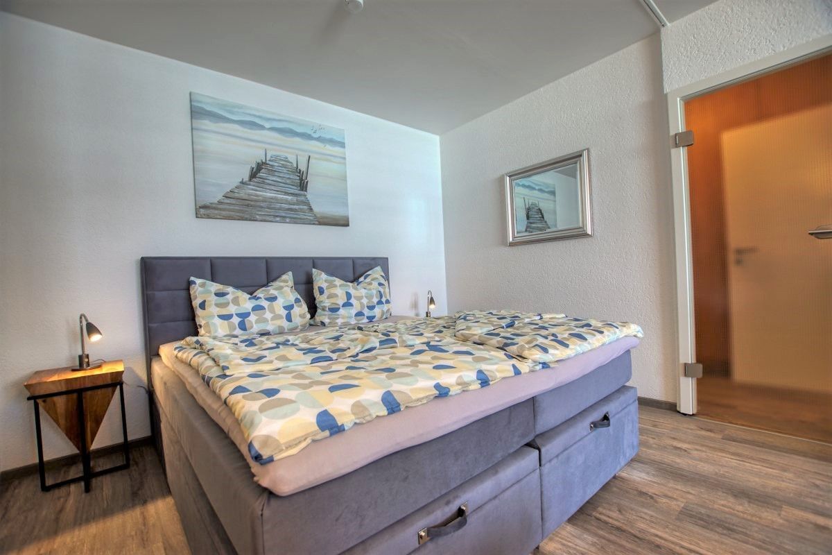 Elternschlafbereich: Doppel-Boxspringbett und Flachbildfernseher