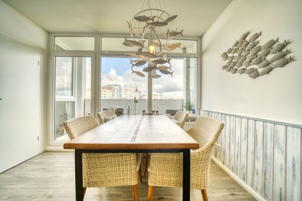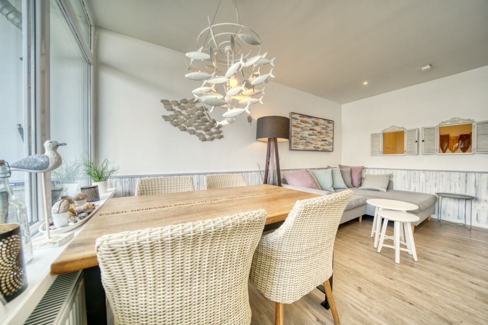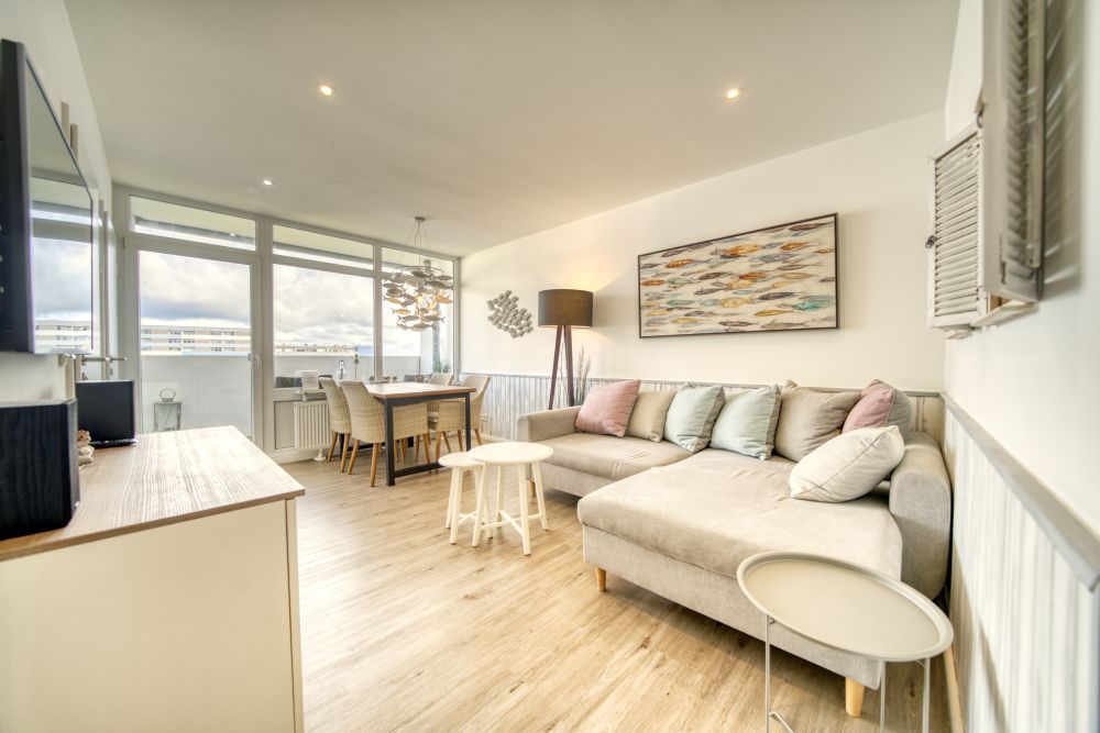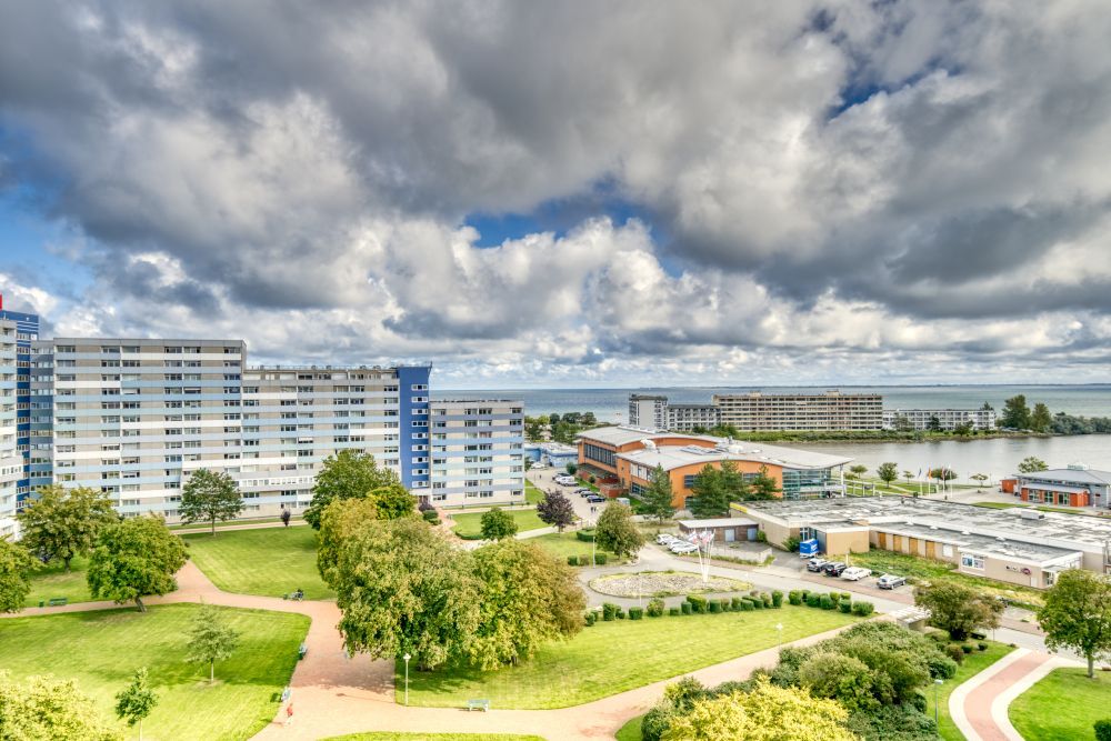 Genießen Sie Ihren Urlaub in dieser komfortablen 45?m² großen Ferienwohnung in der 9. Etage des Hauses N, ideal für bis zu 5 Personen. Der Balkon mit Blick über den Innenhof auf den Binnensee und die Ostsee lädt zu entspannten Stunden ein ob beim Frühstück oder beim Ausklingen des Abends.