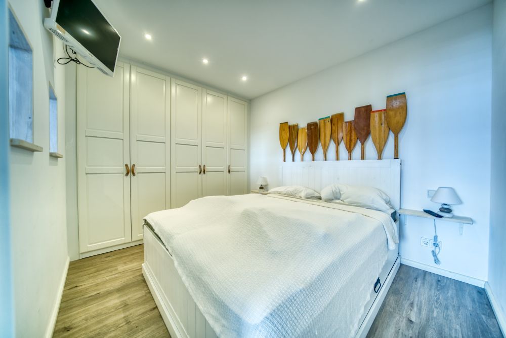 Schlafzimmer mit Doppelbett (und eigenem TV)