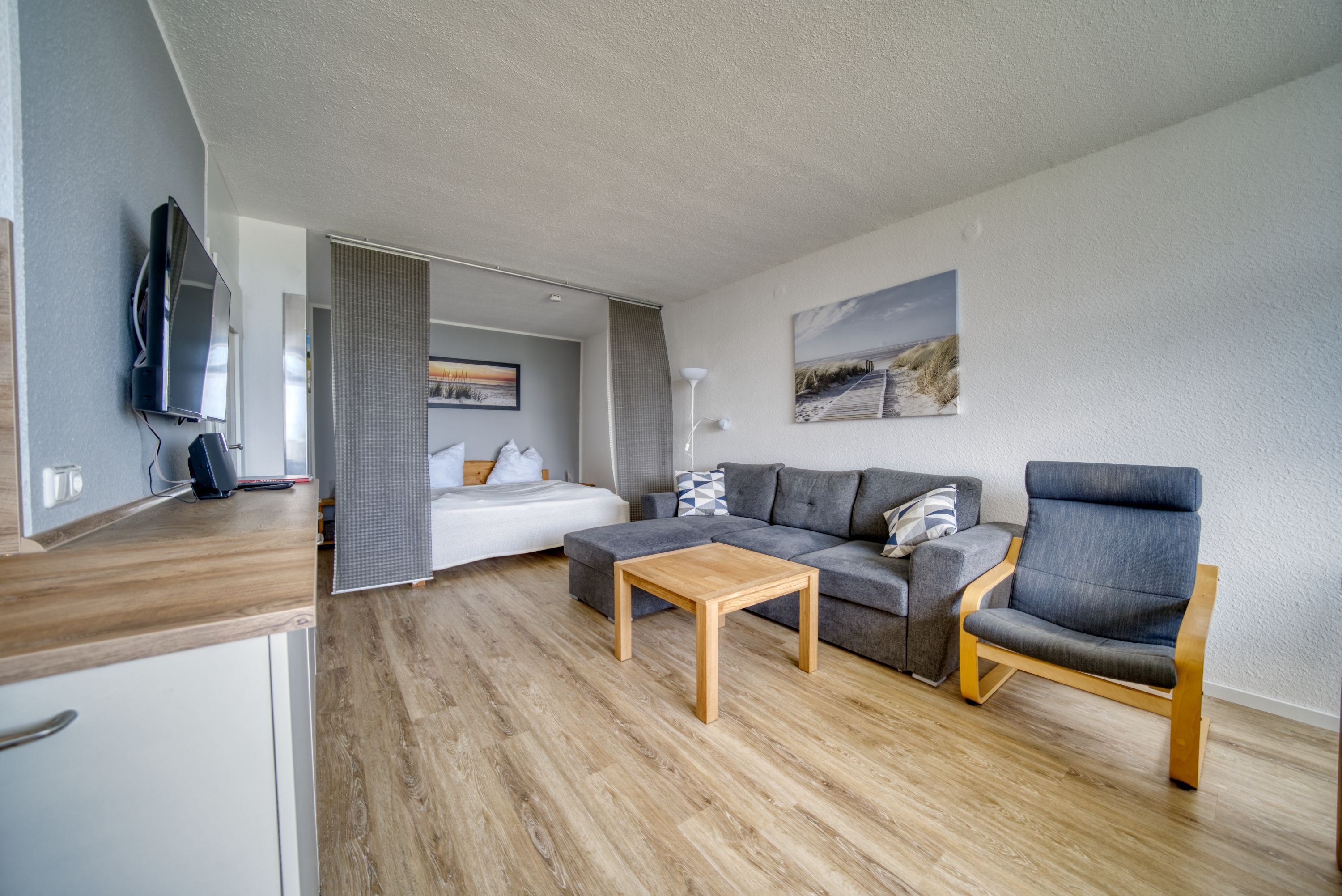 Wohn- und Essbereich mit Smart-TV für gemütliche Stunden und Unterhaltung