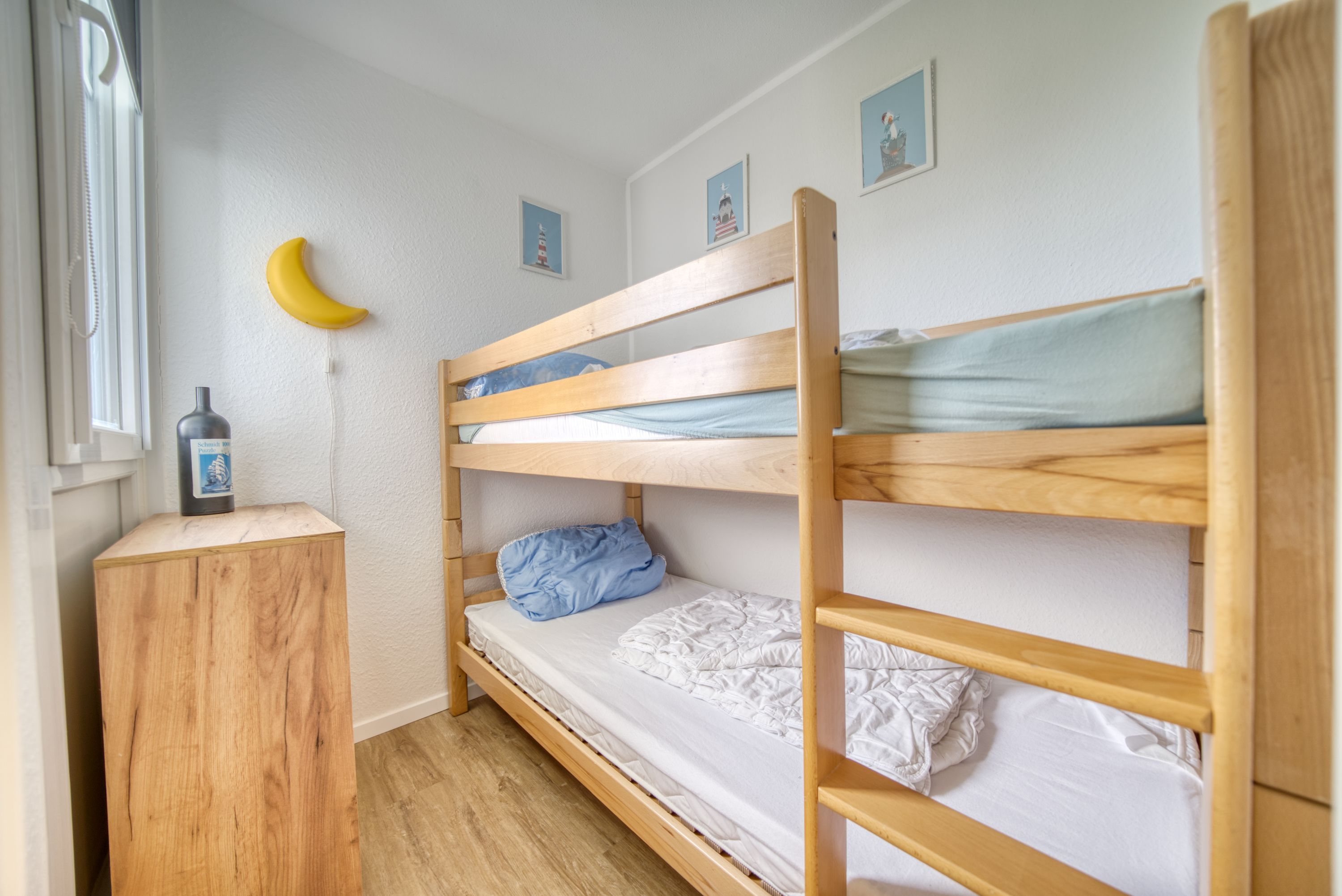 Kinderzimmer mit Etagenbett und Verdunklungsmöglichkeiten, ideal für Kinder oder zusätzliche Gäste