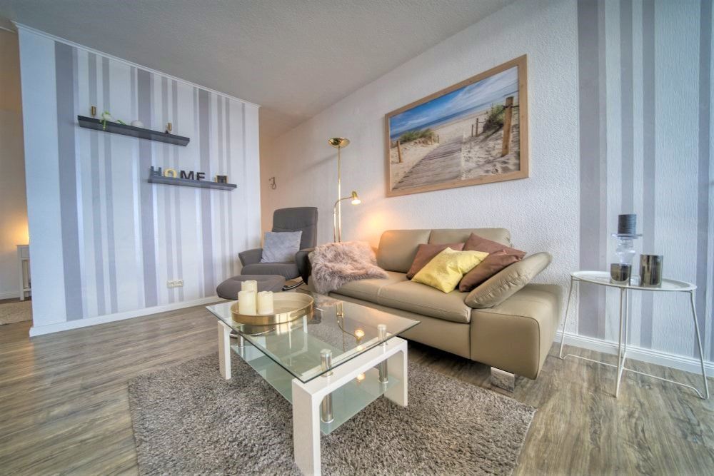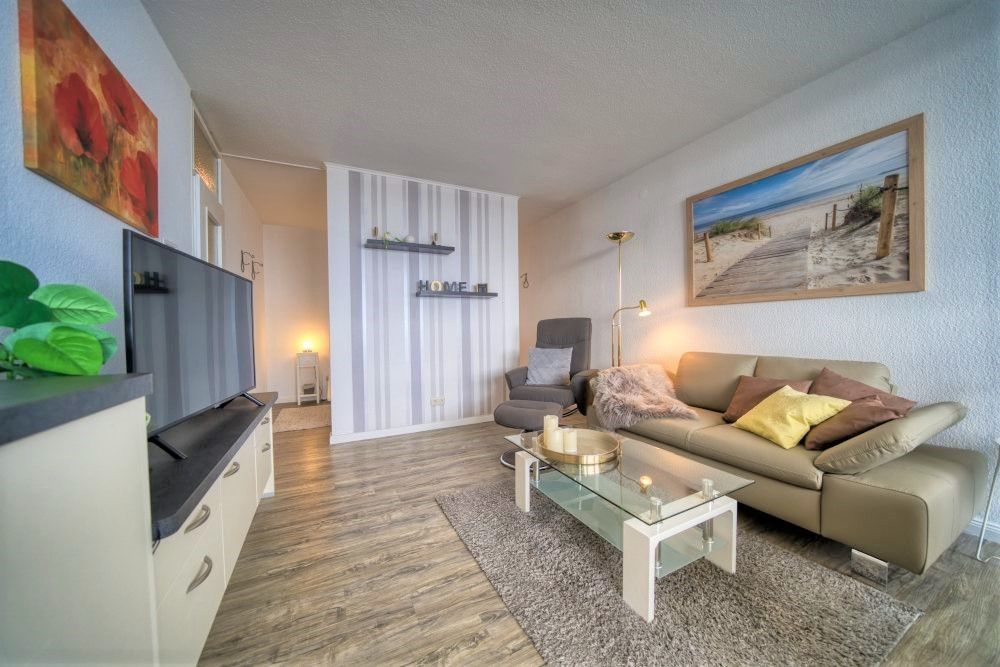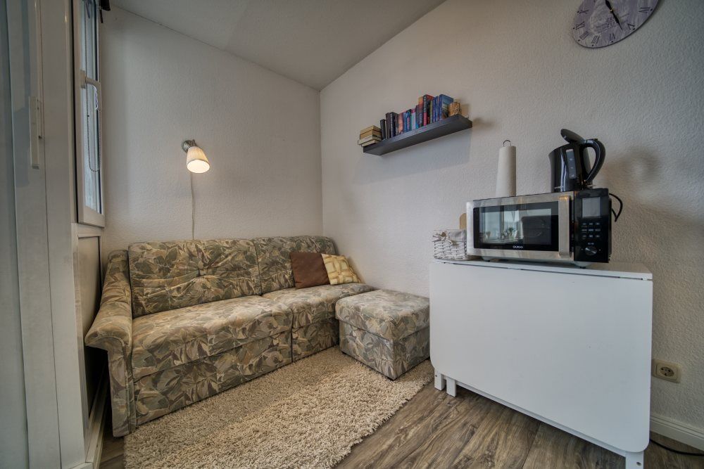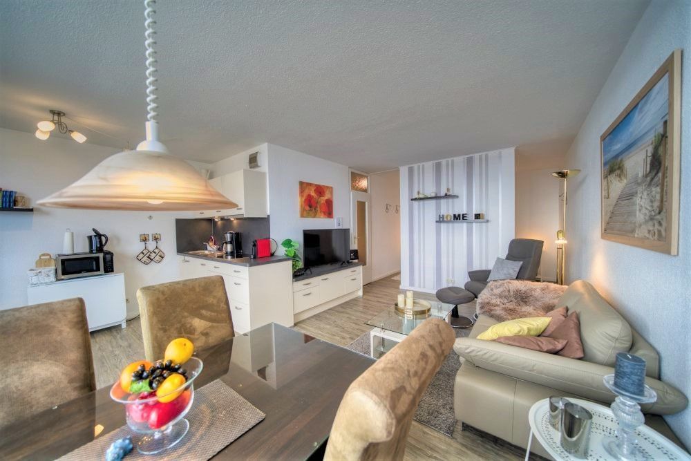 Die Wohnung verfügt über eine Wohnfläche von 45 qm mit folgender Aufteilung: Wohn-Esszimmer, Elternschlafraum mit Doppelbett, Doppelschlafcouch im Wohnzimmer, komplett eingerichtete, offene Küche mit Mikrowelle, Kühlschrank und Gefrierfach, 4-Plattencerankochfeld, Dunstabzugshaube, Bad mit WC und ebenerdiger Duschkabine. Flachbild-Fernseher und Radio im Wohnzimmer und WLAN.