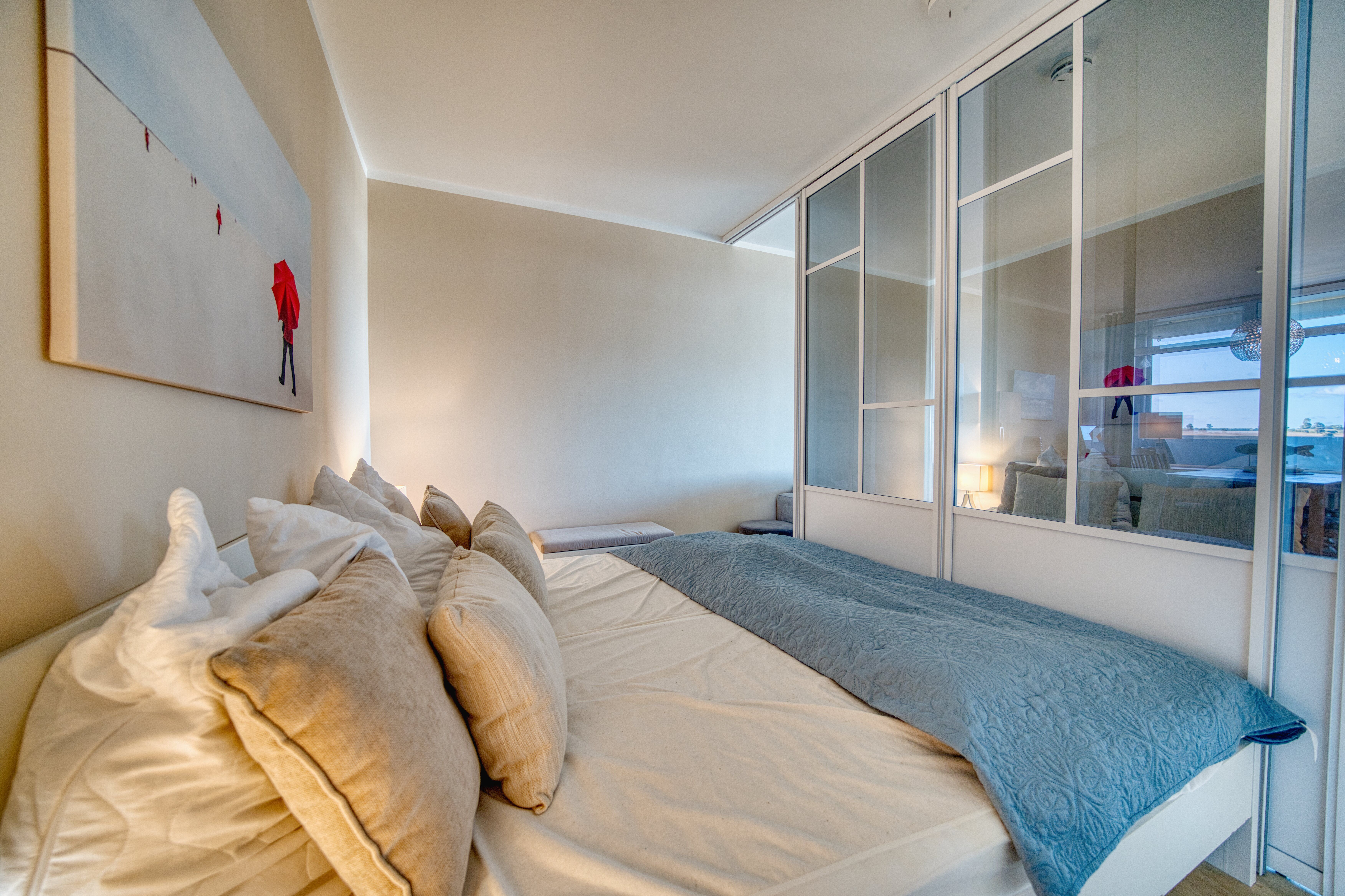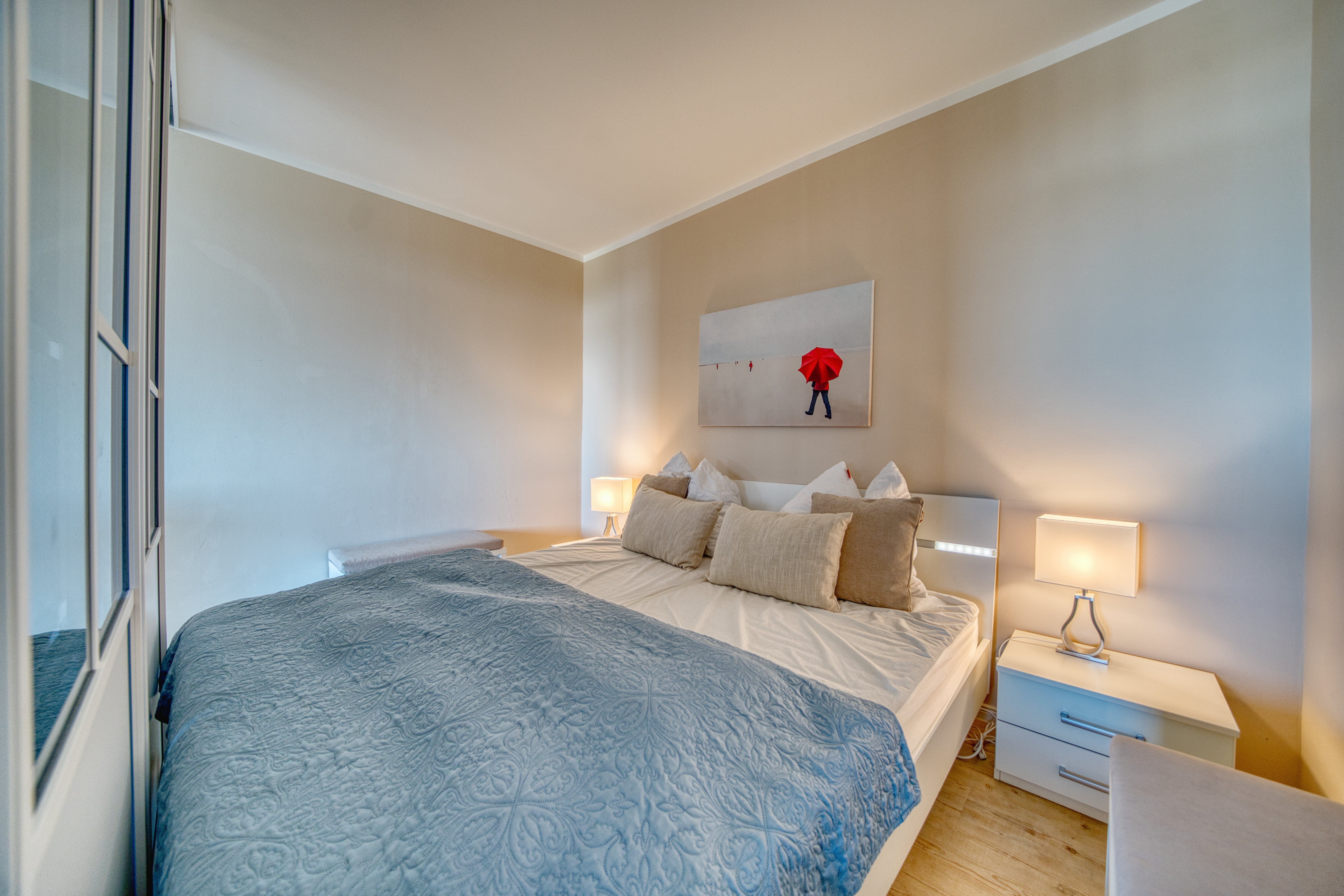 Schlafbereich mit Doppelbett, durch Schiebetüren abtrennbar für mehr Privatsphäre