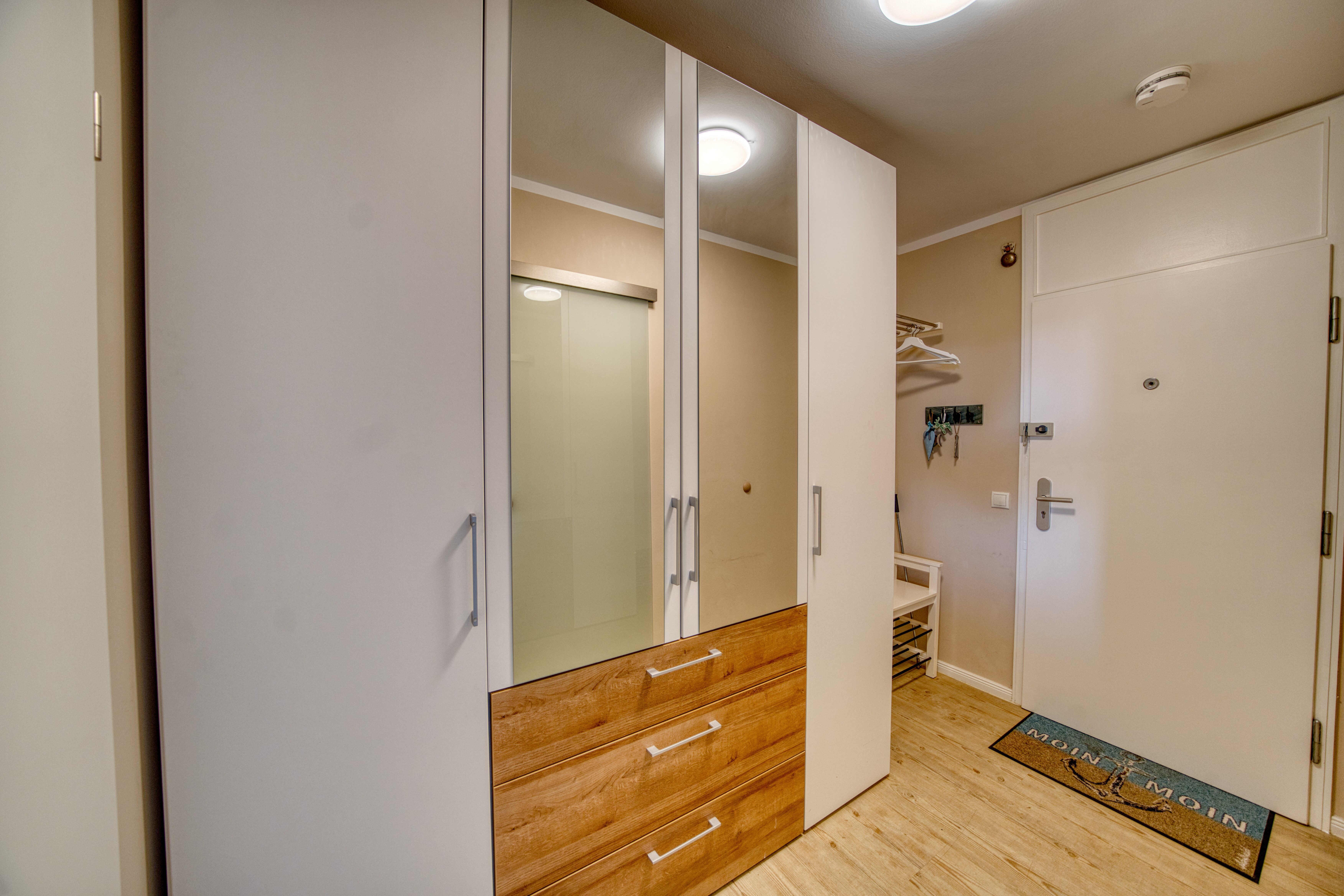 Willkommen in dieser charmanten Ferienwohnung im Ferienpark Heiligenhafen, Haus L, 5. Etage. Die 45?m² große Wohnung bietet Platz für bis zu 4 Personen und überzeugt durch eine durchdachte Raumaufteilung und ruhige Lage mit Blick auf die Grünwiesen.