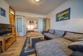 Der helle Wohn- und Essbereich ist mit einem modernen Flachbildfernseher ausgestattet und lädt zum gemütlichen Verweilen ein.
