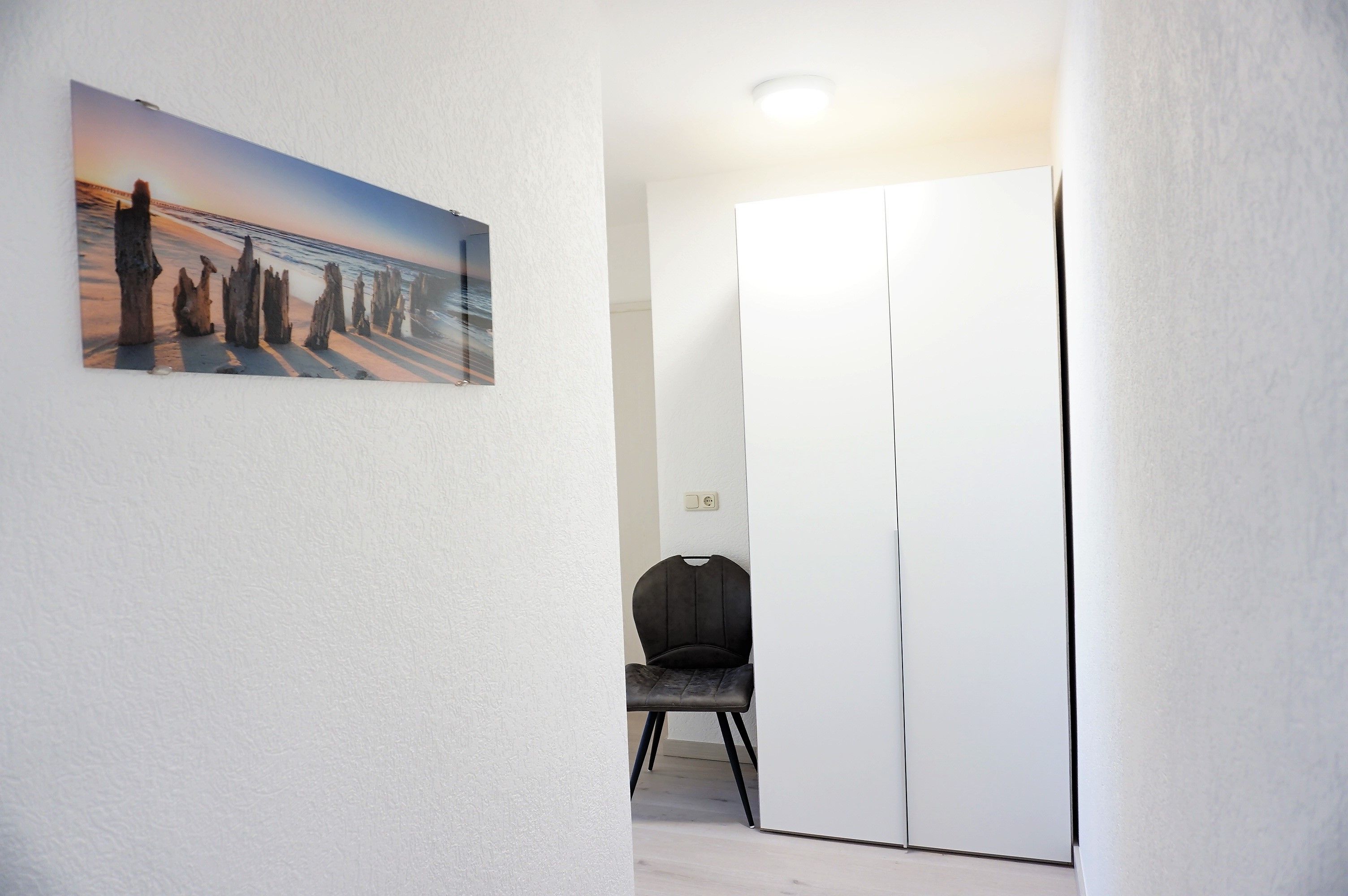 Für Ihre Kleidung sind 3 großzügige Kleiderschränke (jeweils im Schlafzimmer und 1 Schrank im Flur) vorhanden.