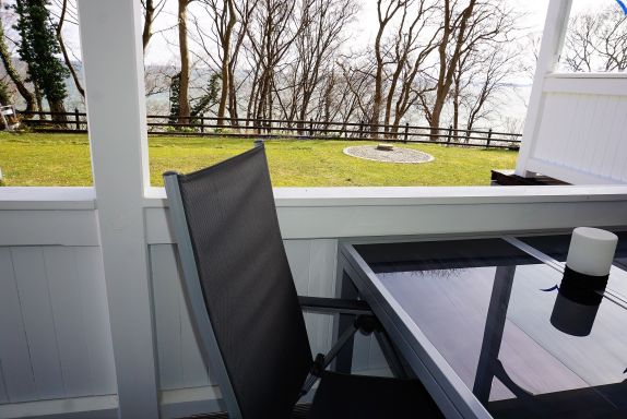 • Großer, windgeschützter Balkon - ausgestattet mit modernen Lounge-Möbeln