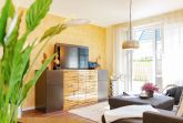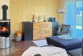 Schon beim Betreten der Ferienwohnung Bremen spüren Sie die einladende Wärme und Geborgenheit, die dieses Zuhause auszeichnet. Große Fenster lassen viel Tageslicht herein und eröffnen den Blick ins Grüne. Der offene Wohnbereich mit Kaminofen schafft eine behagliche Atmosphäre perfekt für gemütliche Abende mit einem Glas Wein oder spannenden Filmen am versenkbaren Fernseher.
