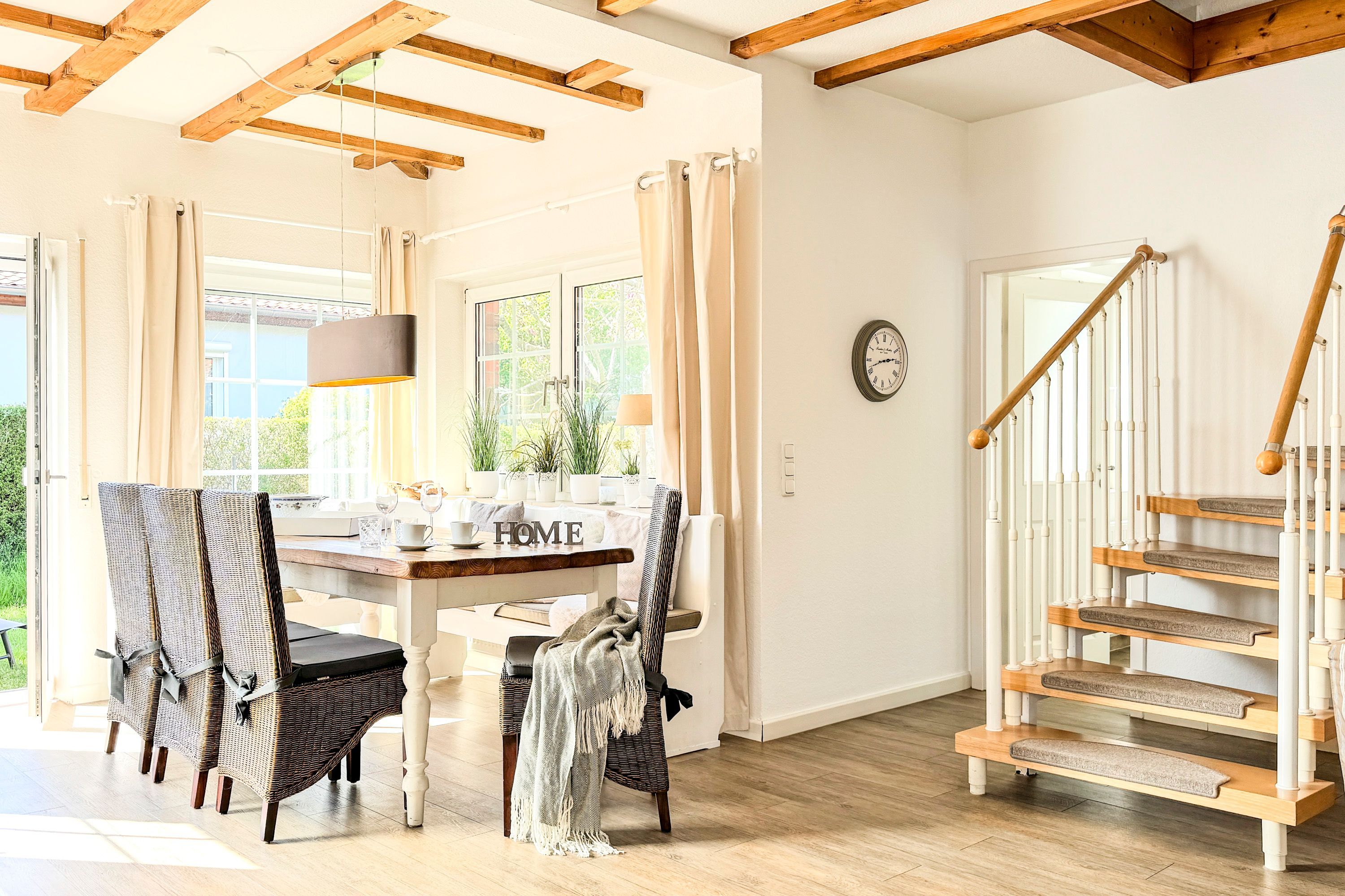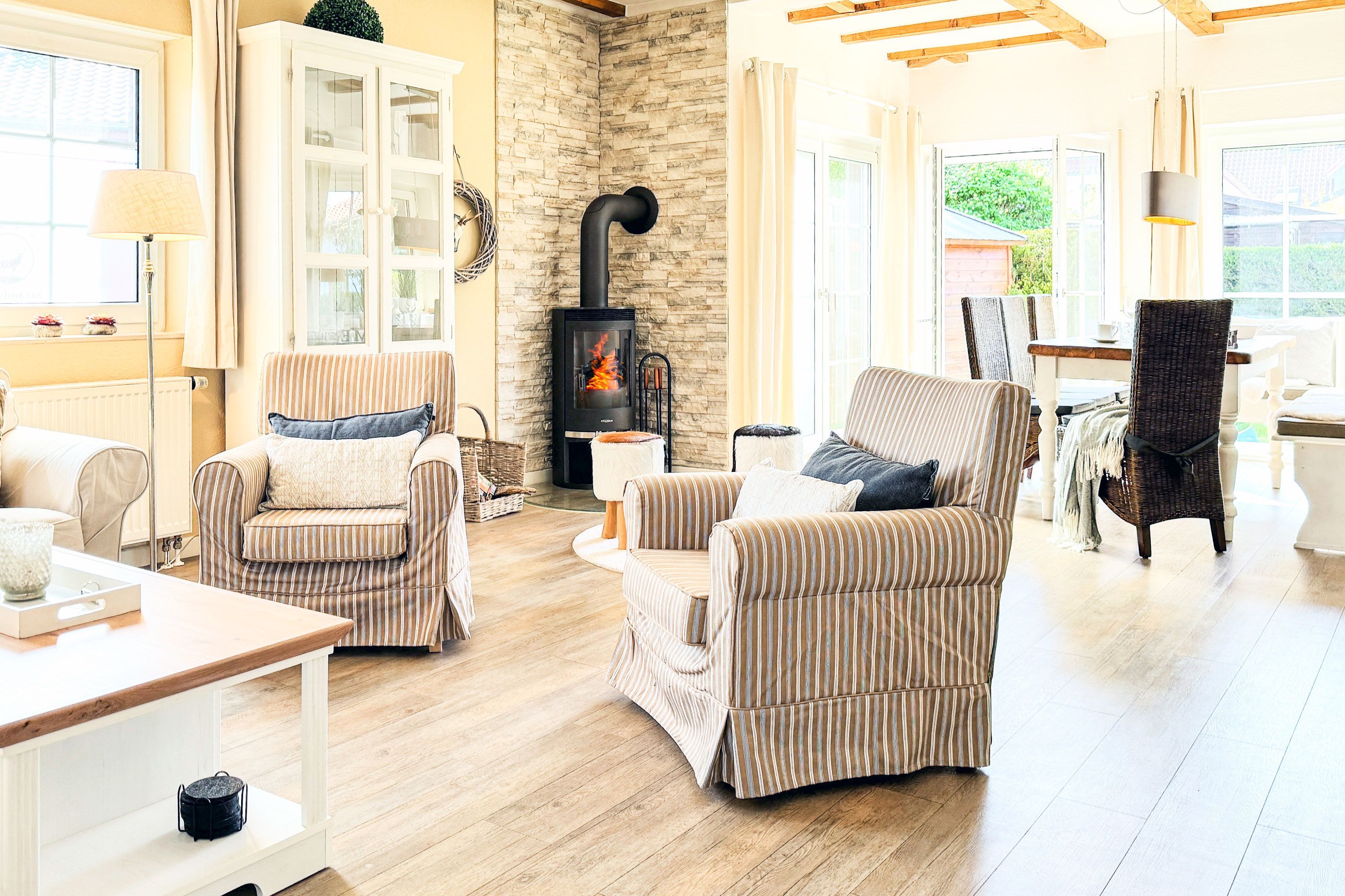 Das Ferienhaus Strandwild heißt Sie mit einer wohltuenden und behaglichen Atmosphäre willkommen. Der offene Wohnbereich mit Kamin bildet das Herzstück des Hauses und lädt zu gemütlichen Stunden ein ob beim Schmökern in einem guten Buch oder bei einem geselligen Spieleabend mit der Familie. Die moderne, voll ausgestattete Küche bietet Ihnen alles, was Sie benötigen, um ohne Aufwand köstliche Mahlzeiten zuzubereiten und gemeinsam zu genießen.