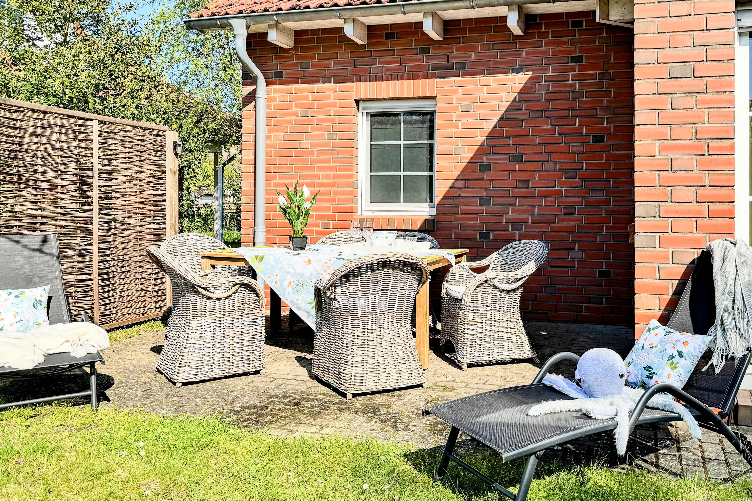 • Terrasse mit Garten inklusive Gartenmöbeln und Sonnenliegen