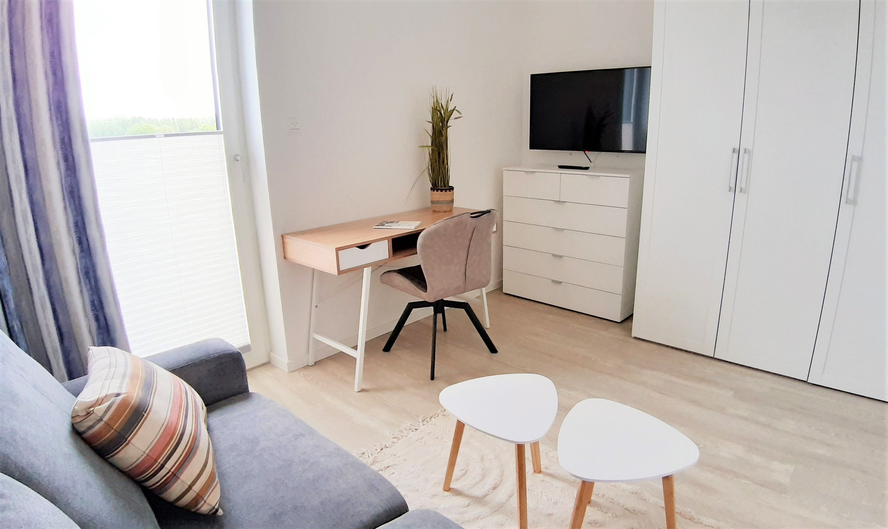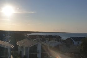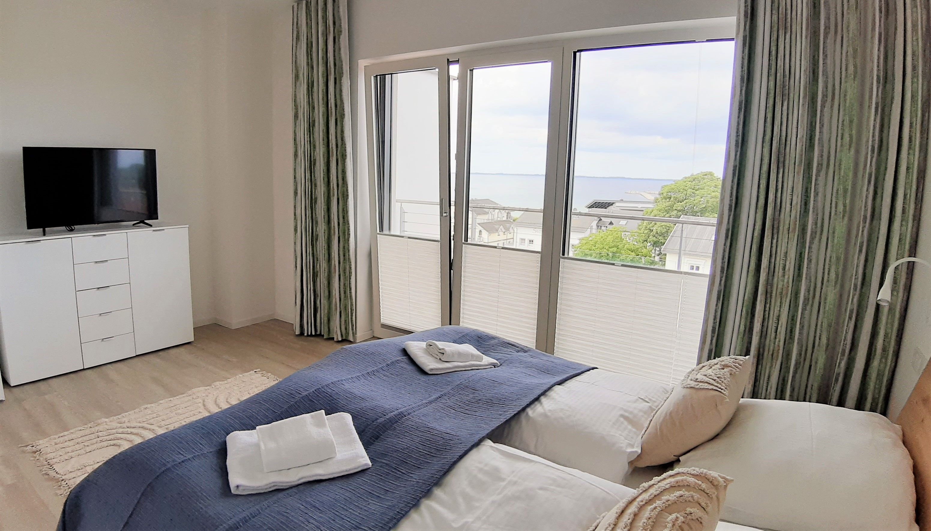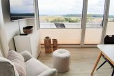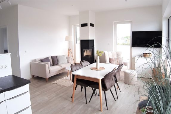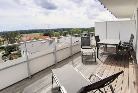 Unser Penthouse Seaside über den Dächern des Erholungsortes Glowe mit seiner umlaufenden Terrasse bietet herrliche Ausblick über die Ostsee und die Boddenlandschaft. Der großzügige Wohnbereich mit moderner Küche, Essbereich, Couchecke mit Lesesessel, TV und Kamin bieten viel Platz für individuelle Freizeitgestaltung. Ein Schlafzimmer ist mit einem großen Doppelbett und ein Schlafzimmer mit einer Schlafcouch (Liegefläche 140x200cm) ausgestattet. Das Bad verfügt über eine bodengleiche Echtglasdusche. Zur Wohnung gehört ein Tiefgaragenstellplatz.