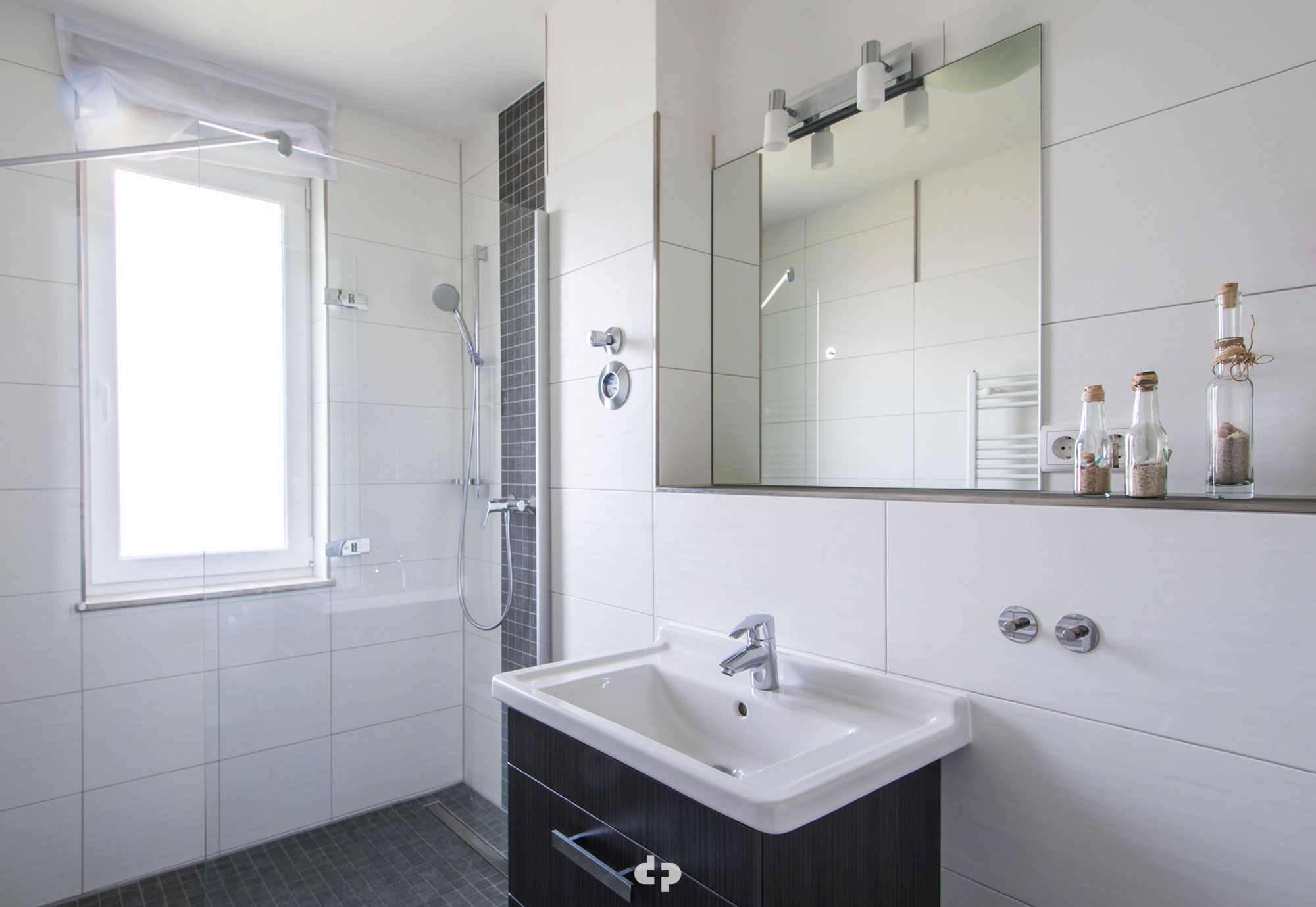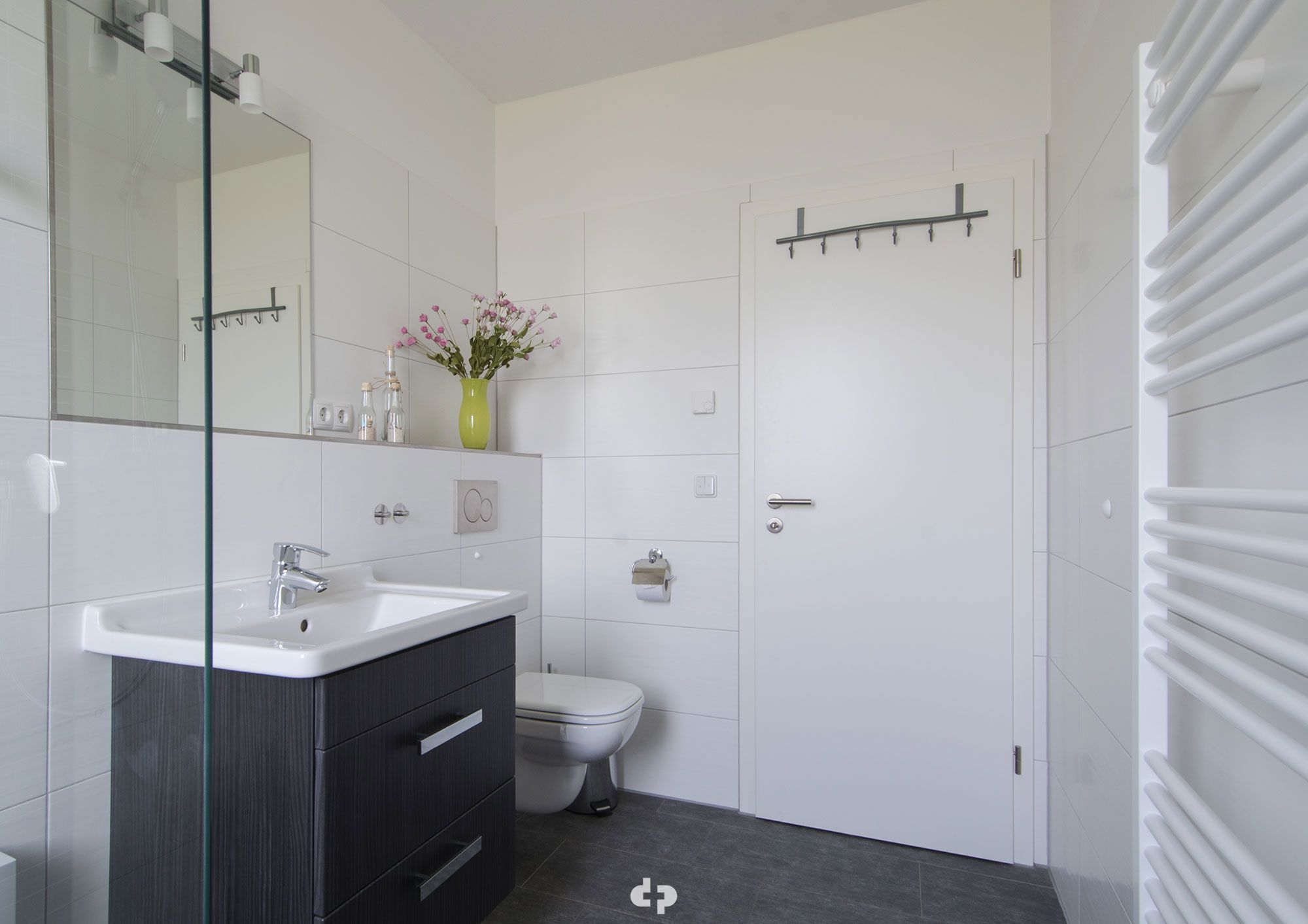 • Das Bad ist mit WC, Waschtisch und Dusche ausgestattet.