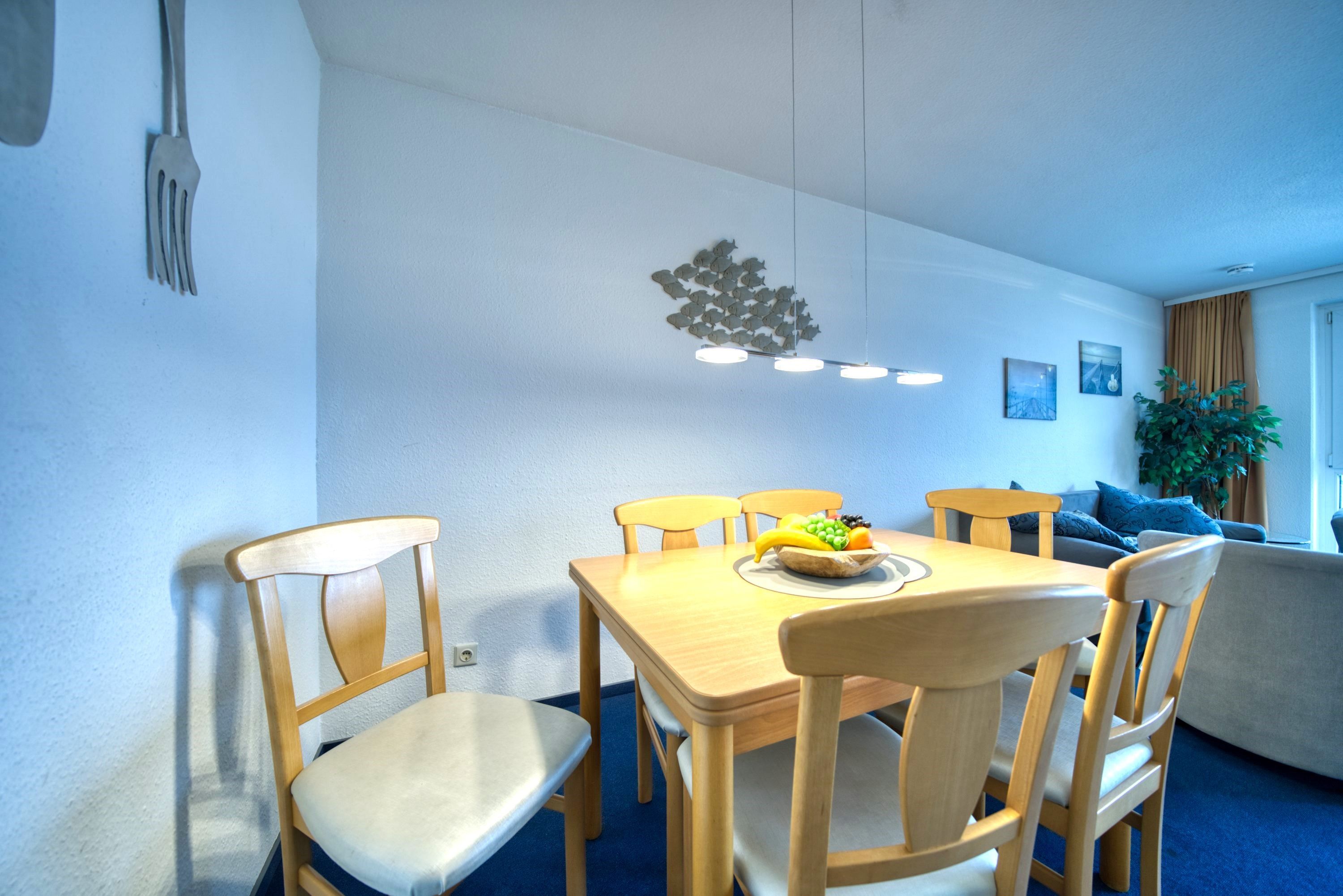 Wohnbereich: Großzügig und hell, mit gemütlichem Schlafsofa, Flatscreen-TV und Essbereich