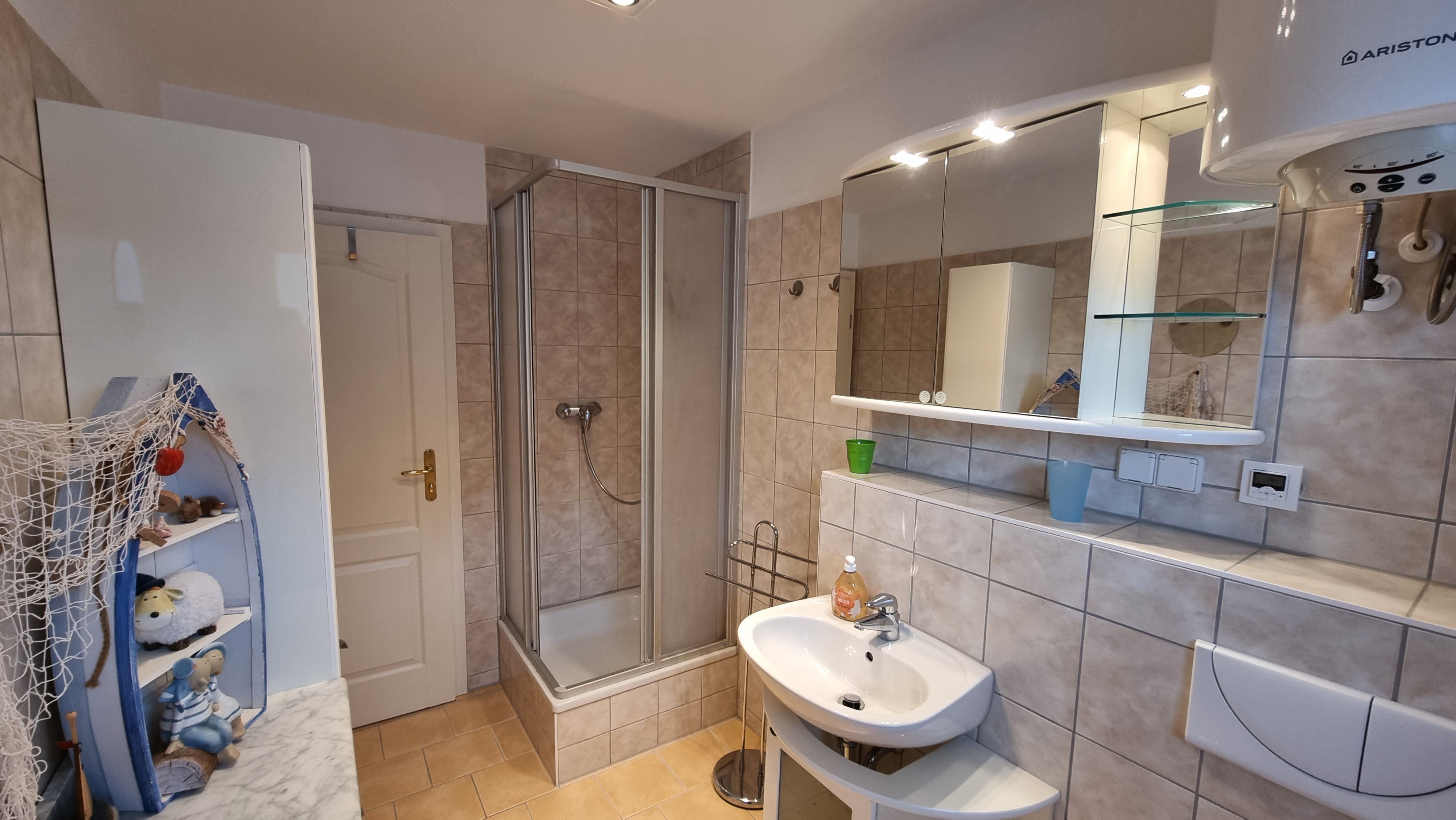 Die Wohnung zu Fuß ca. 8 Gehminuten vom Strand entfernt. Den Strand erreichen Sie über den gegenüberliegenden Zeltplatz, wo Sie am Morgen frische Brötchen und Waren des täglichen Bedarfs bekommen.