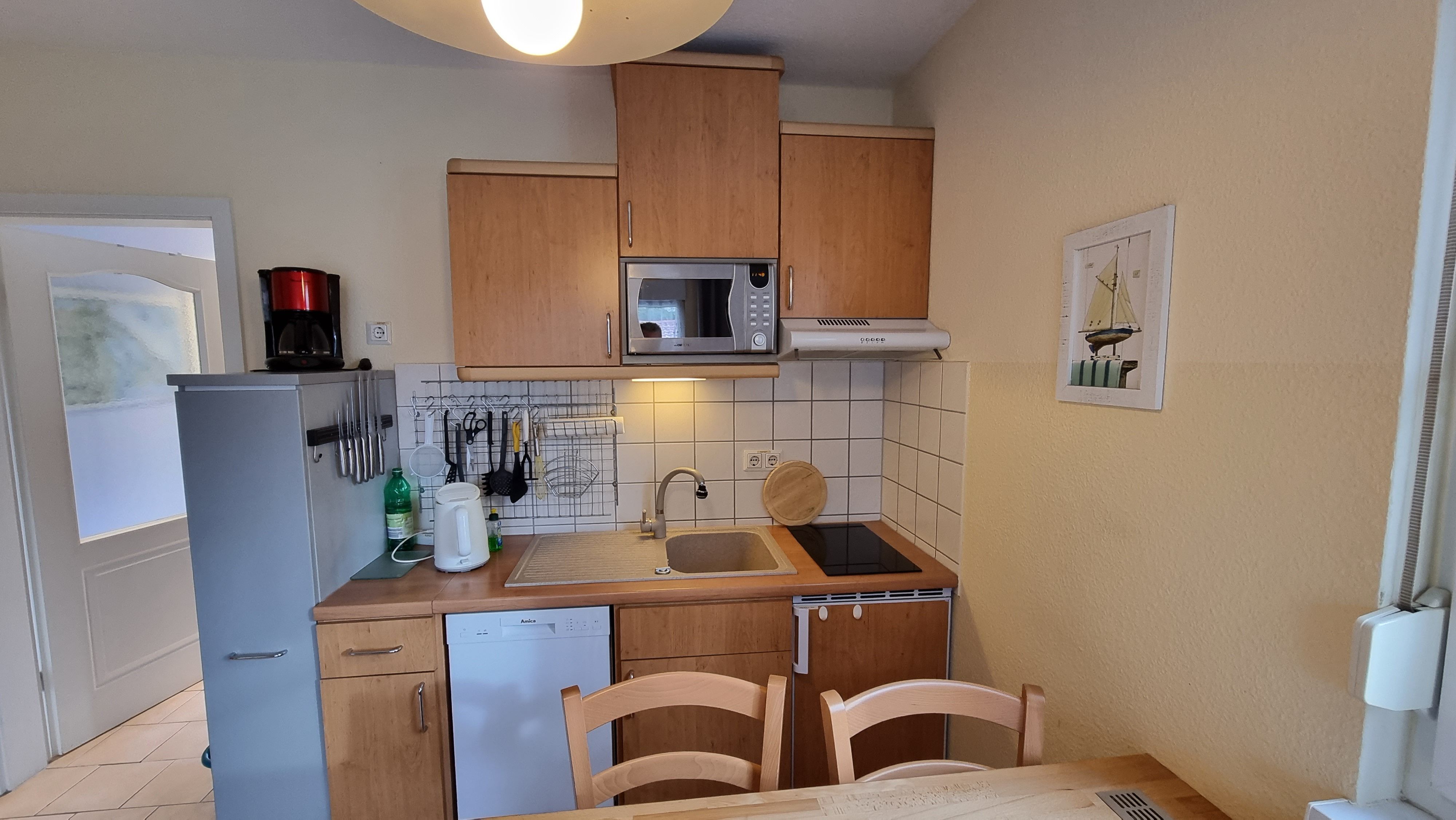 Die Wohnung zu Fuß ca. 8 Gehminuten vom Strand entfernt. Den Strand erreichen Sie über den gegenüberliegenden Zeltplatz, wo Sie am Morgen frische Brötchen und Waren des täglichen Bedarfs bekommen.