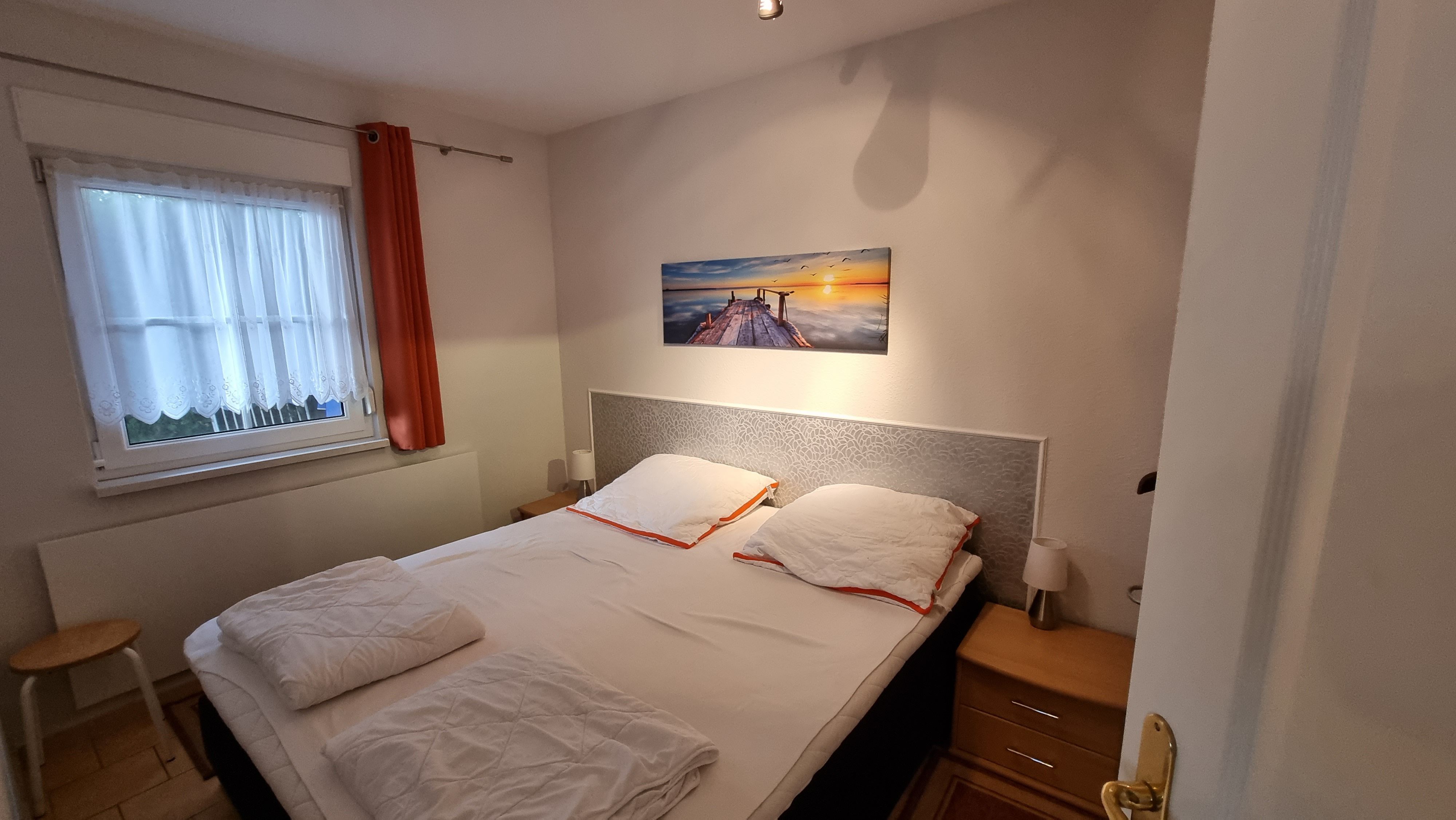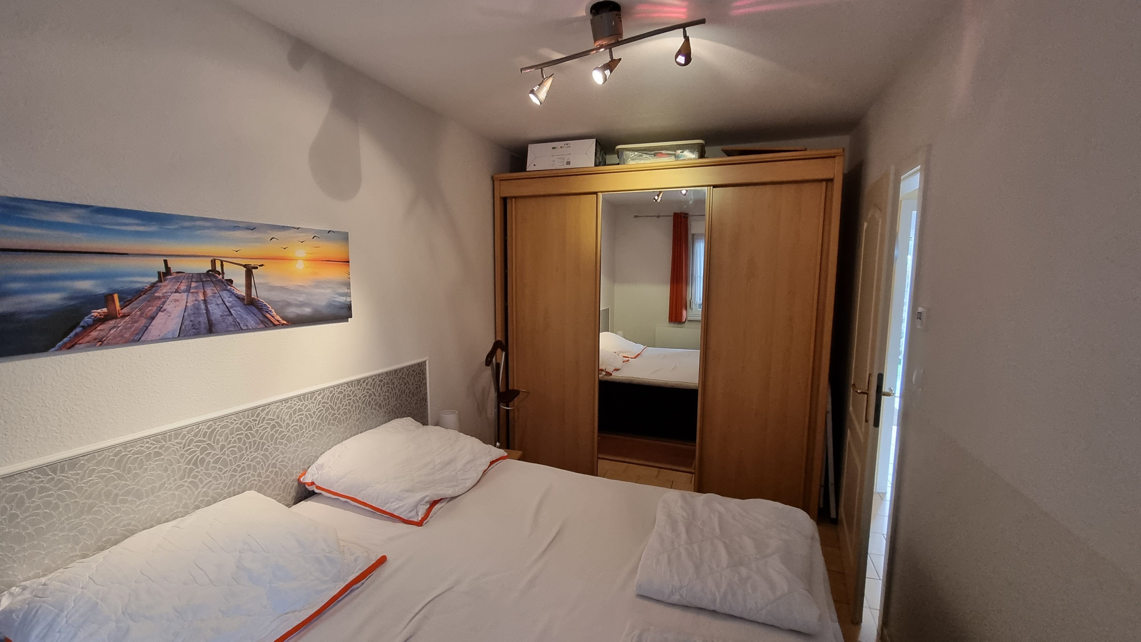 1 Schlafzimmer mit Schrank & Doppelbett 1.80*2.00m (durchgehende Matratze)
