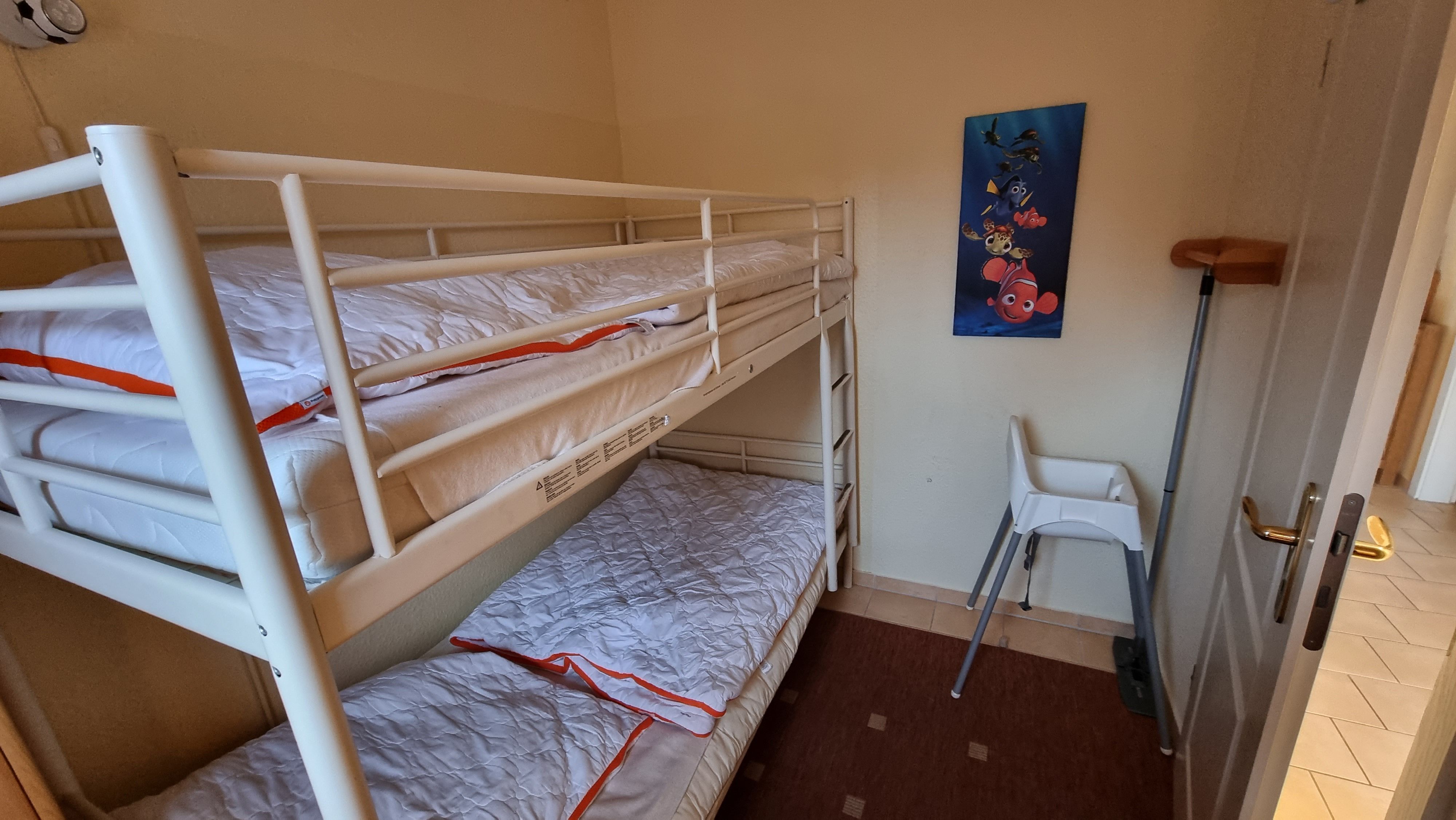 1 Schlafzimmer mit Schrank & Etagenbett je 0.90*2.00m