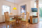 Sie wohnen in einer komfortablen 3-Raum-Ferienwohnung von ca. 59 qm Größe, die sich im Erdgeschoss eines Mehrfamilienhauses befindet. Das helle freundliche Wohnzimmer ist ausgestattet mit einer Sitzgruppe mit Schlafcouch, Radio und 50-Zoll-Smart-TV mit DAB+ und Bluetooth Schnittstelle sowie einem Esstisch und einer offenen Küchenzeile. Die Küche ist ausgestattet mit allen wichtigen Küchengeräten und -utensilien, die Sie für Ihr perfektes Dinner benötigen: 4-Zonen-Ceranfeld mit Backofen und Dunstabzug, Geschirrspüler, Kühlschrank mit Gefrierfach, Wasserkocher, Kaffeemaschine und Toaster sowie ausreichend Kochutensilien, Geschirr und Besteck sind vorhanden. Vom Wohnraum aus betreten Sie die Terrasse, die in Richtung Süden ausgerichtet ist. Hier können nach einem erlebnisreichen Tag am Strand Ihren Abend zu einem Gläschen Wein im Strandkorb oder auf der Sitzgruppe ausklingen lassen. Ein Schlafzimmer mit Doppelbett (180cm x 200cm) und Smart-TV, ein Schlafzimmer mit Französischem Bett (140cm x 200cm) sowie das Bad mit Dusche und WC vervollständigen das Gesamtbild dieser Wohnung.