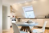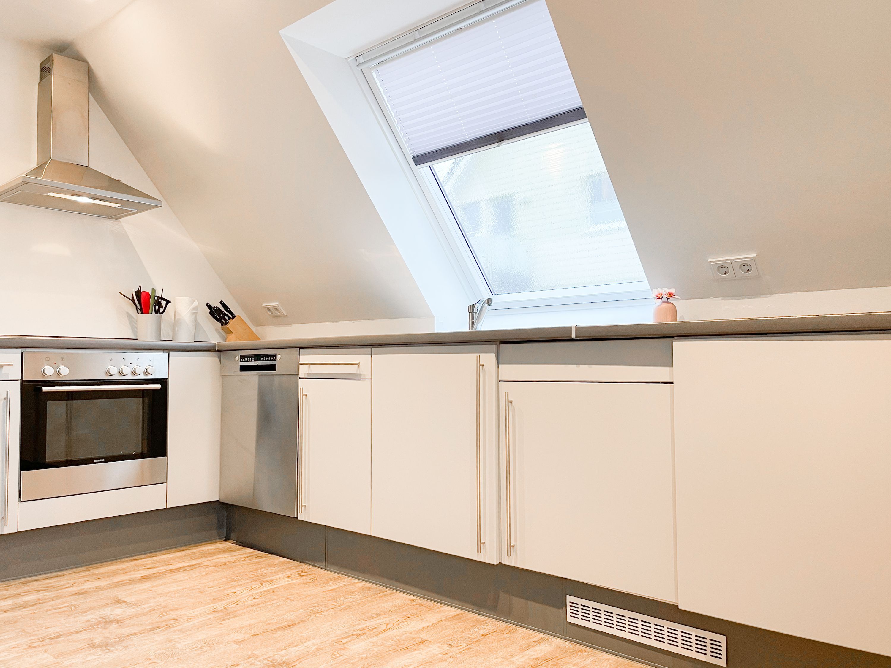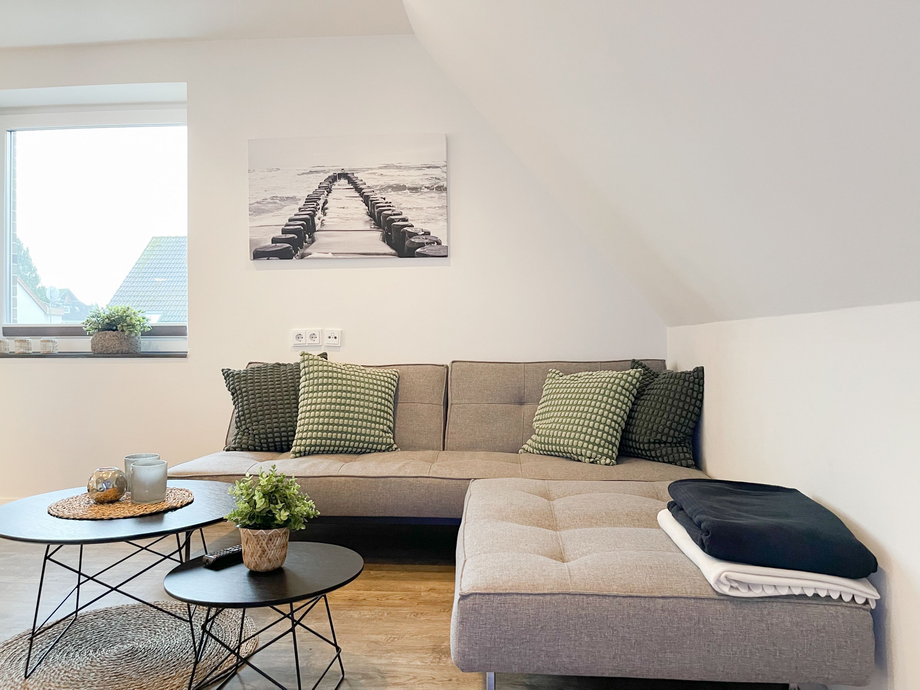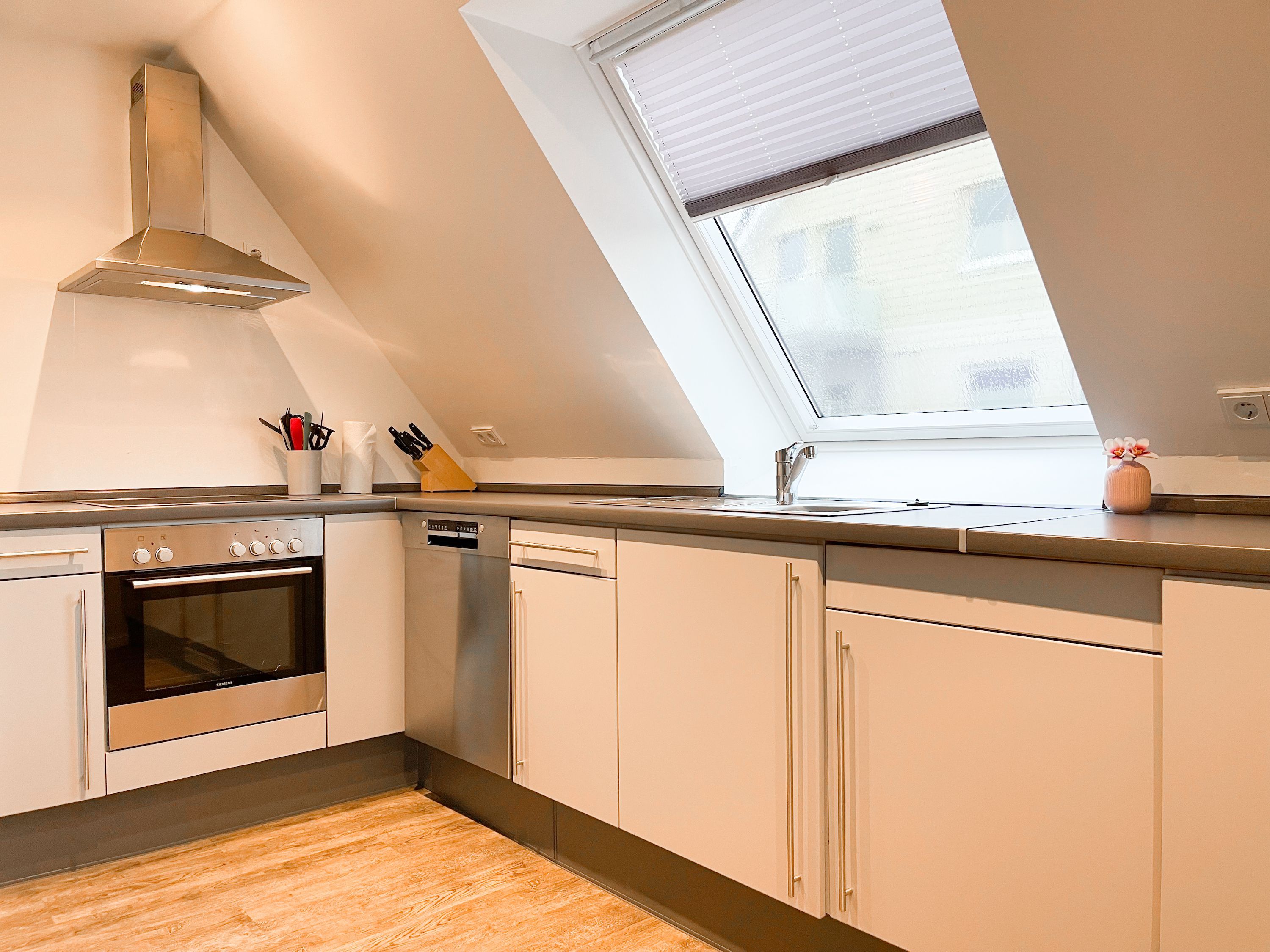 Die Maisonette Waterkant #2 befindet sich im Obergeschoss und bietet mit 2 Schlafzimmern auf 50 qm ausreichend Raum für 2-4 Personen, um einen entspannten Ostseeurlaub in Strandnähe zu verleben. Es erwartet Sie ein heller Wohnbereich mit Sofa, ein anschließender Essbereich und eine offene Einbauküche, gut ausgestattet mit Ceranfeld, Backofen, Geschirrspüler und Kühl- und Gefrierschrank. Das separate Schlafzimmer ist mit einem Doppelbett (140x200), einem Einbauschrank mit viel Staufläche, Verdunkelungsplissee und TV eingerichtet. Das Galerieschlafzimmer im Dachgeschoss (Deckenhöhe 1,80 und halboffen zum Flur) ist über eine Raumspartreppe zu erreichen verfügt über 2 Einzelbetten. Aufgrund der Schrägen und der geringen Deckenhöhe ist es gut für Kinder geeignet. Das Bad ist mit einer Dusche, Waschbecken, WC, Fenster und Handtuchwärmer ausgestattet. WLAN kann selbstverständlich kostenlos genutzt werden. Ein Außenstellplatz gehört zur Wohnung. Ein abschließbarer Fahrradraum kann gemeinschaftlich genutzt werden, ebenso Waschmaschine und Trockner, die im separaten Waschraum untergebracht sind.
