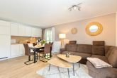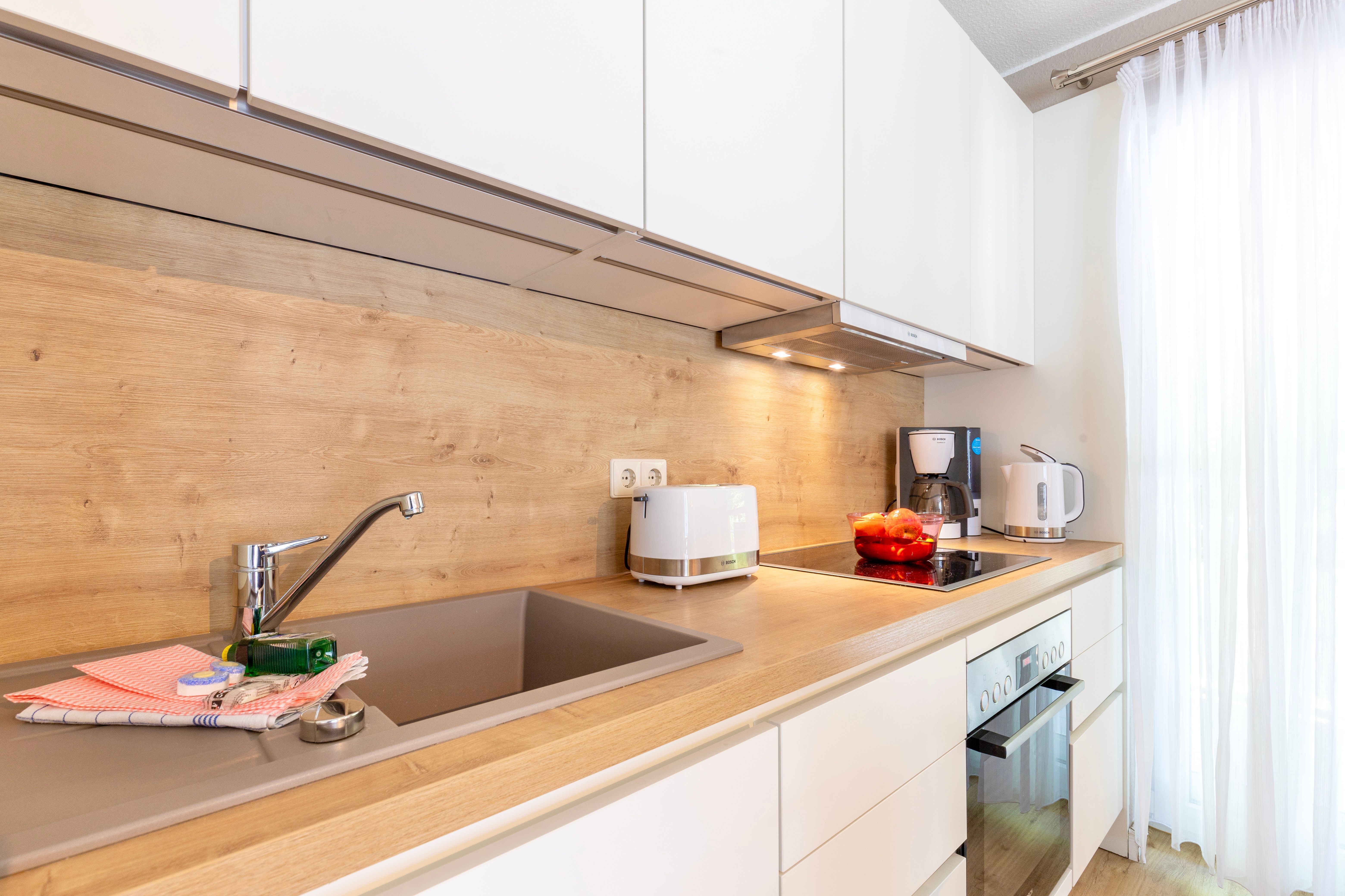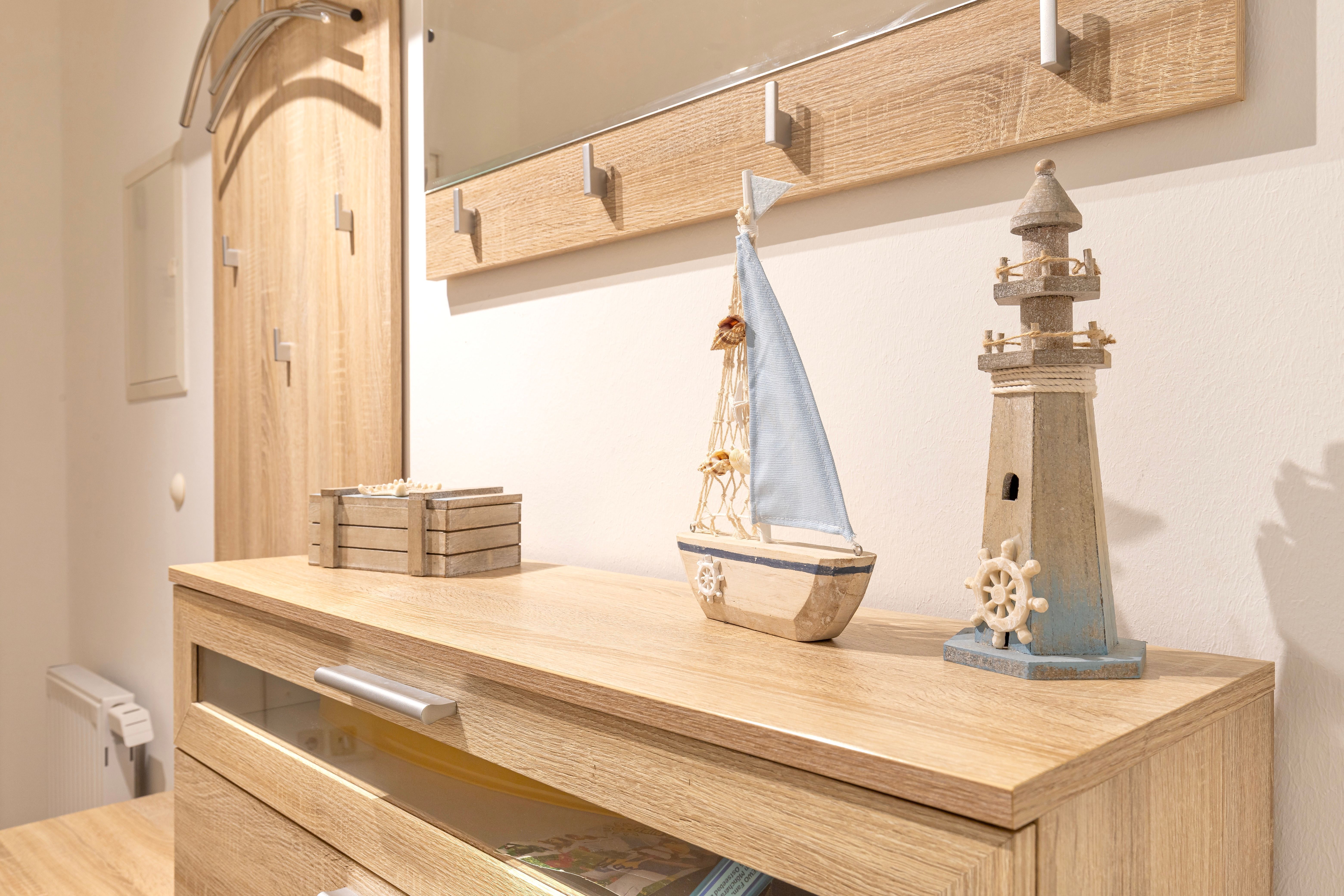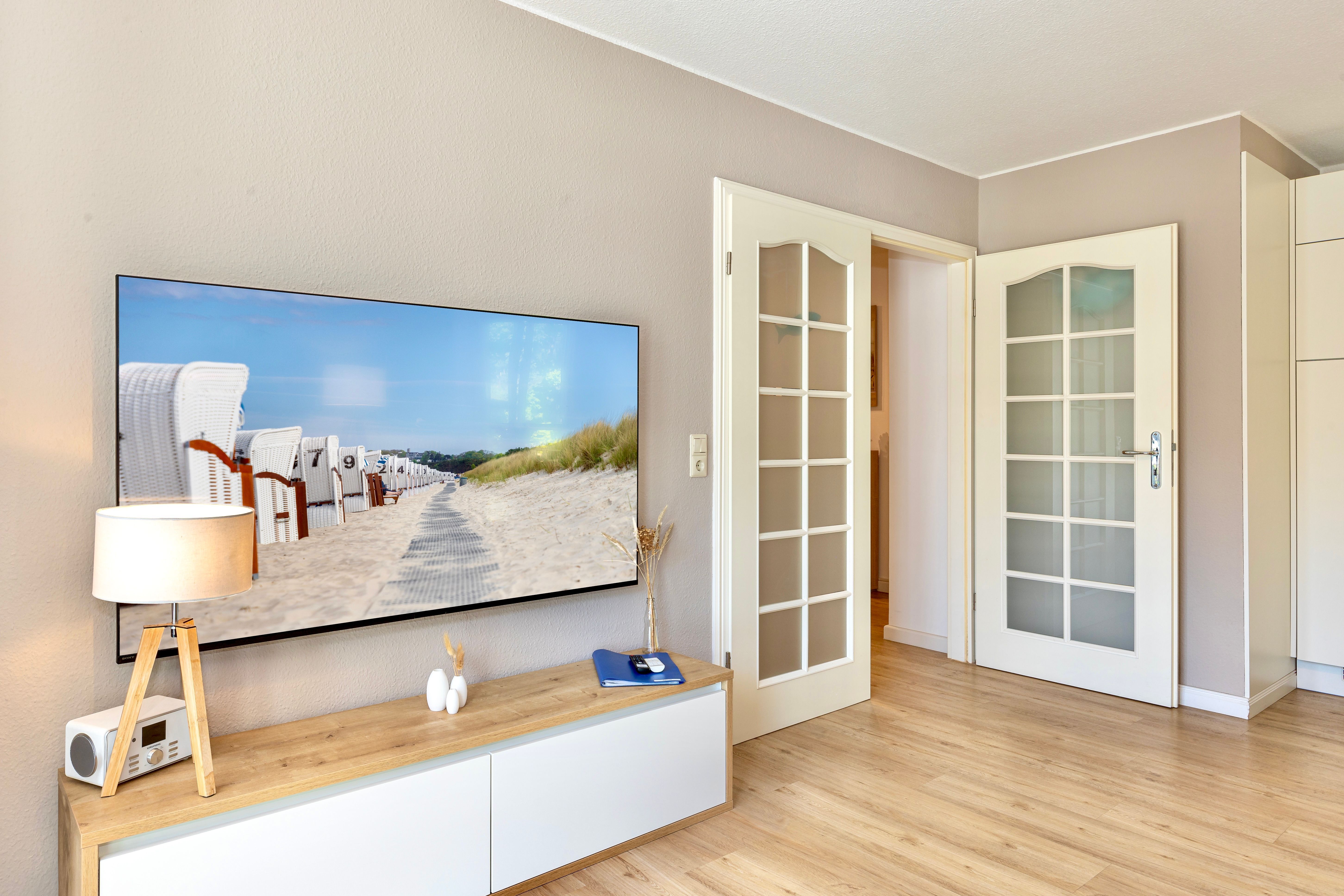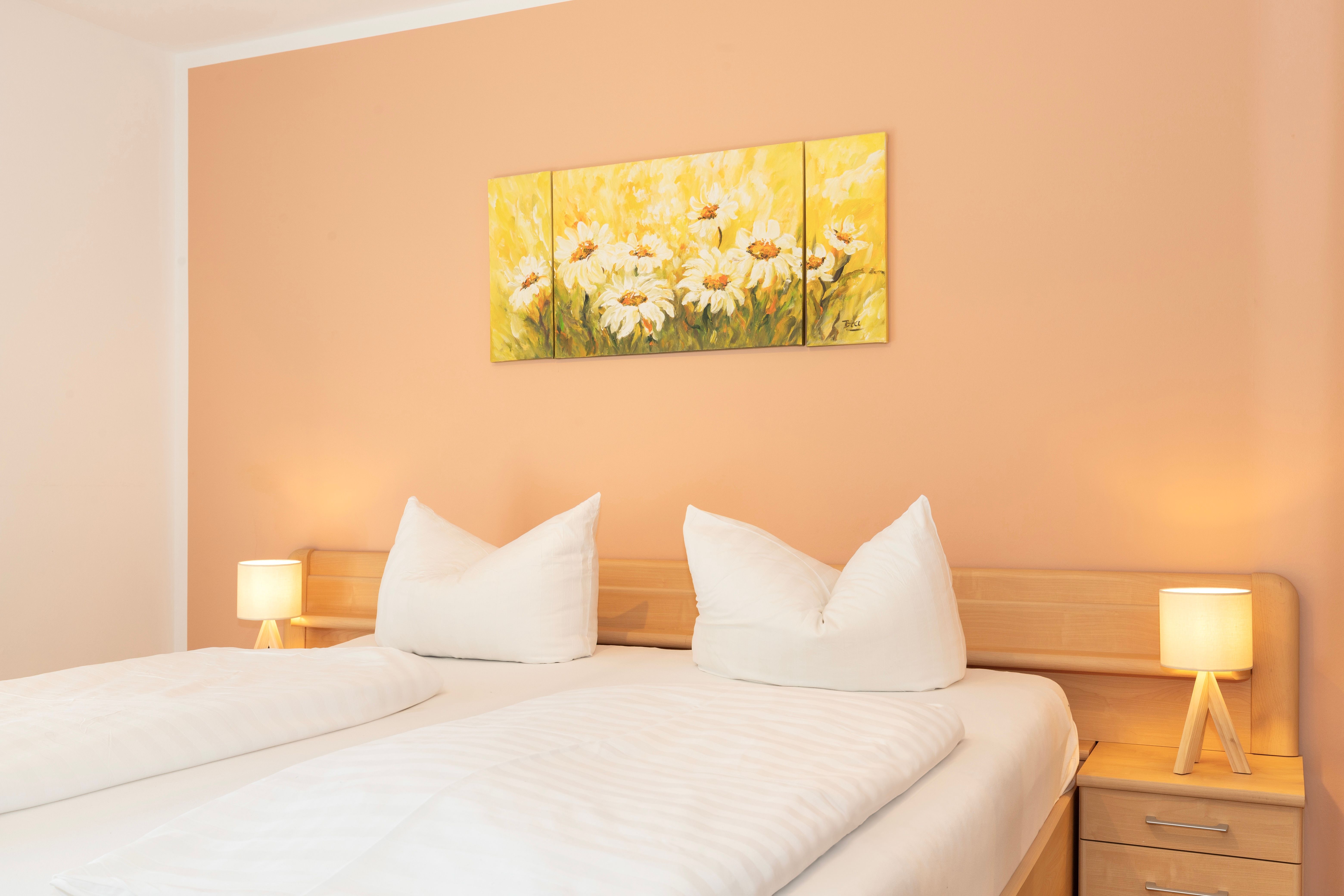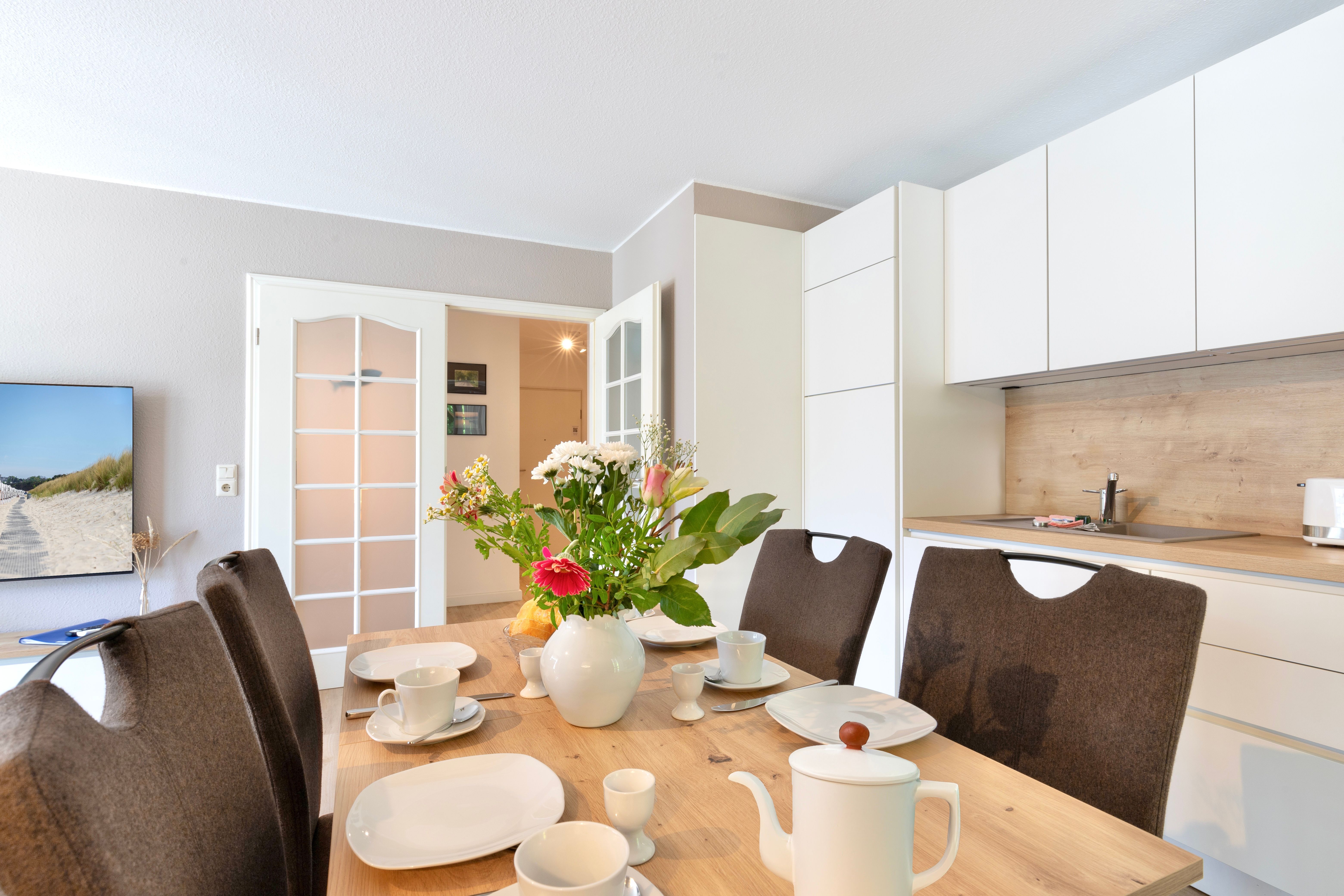 Ihre Nichtraucherferienwohnung ist mit viel Liebe zum Detail ausgestattet und eingerichtet worden. Sie wohnen in einer ca. 47 m² 2-Zimmer Wohnung + 27 m² für beide Balkone, die ideal für 2 Personen bzw. eine 3. Person auf der Schlafcouch ausgelegt ist. Die Wohnung befindet sich in der 1. Etage und ist per Fahrstuhl bequem zu erreichen. In der Wohnung finden Sie einen kombinierten Wohn/Koch- und Essbereich. Die integrierte Küchenzeile lässt mit einer Mikrowelle, Backofen, Ceranfeld, Spülmaschine, Kühlschrank mit Gefrierfach, Wasserkocher, Toaster, Kaffeemaschine, Senseo Padmaschine und anderen praktischen Helfern keine kulinarischen Wünsche offen. Im Wohnbereich sind weiterhin ein Esstisch, eine gemütliche Couch (Schlafmöglichkeit 3. Person/ 1,20m x 1,90m) vorhanden. Abgerundet wird der Wohnbereich mit einem Smart-TV, DAB-Radio, DVD-Player und einer Musikanlage. Ein WLAN-Zugang steht Ihnen inklusive zur Verfügung. Der Ostbalkon ist vom Wohn/Essbereich, sowie der Südbalkon vom Wohnbereich und vom Schlafzimmer begehbar. Um Sie vor Mücken zu schützen, sind die Balkontüren des Ostbalkons, sowie des Südbalkons vom Schlafzimmer mit einer Insektenschutztür versehen. Das Schlafzimmer ist mit einem Doppelbett (1,80m x 2,00m), Nachttischkonsolen, Flachbild-TV, Radio und einem Kleiderschrank ausgestattet. Insektenschutzgitter sorgen für einen ruhigen Schlaf. Das Bad verfügt über eine Dusche mit flachem Einstieg, Waschbecken, Kosmetikspiegel, Fön und WC. Ein Bügelbrett, ein Bügeleisen sowie Reinigungsutensilien stehen Ihnen zusätzlich zur Verfügung. Ein eigener PKW-Stellplatz (Nr. 10, Einfahrtshöhe 1,90m) befindet sich in der Tiefgarage des Hauses. Ihre Fahrräder können Sie im eigenen abschließbaren Keller abstellen. 2 Fahrräder stehen Ihnen zur Nutzung zur Verfügung, sind aber nicht Bestandteil der Buchung, da durch höhere Gewalt nicht immer die Nutzung garantiert werden kann. Haustiere sind nicht erlaubt. Die Erstausstattung eines Wäschepaketes (komplette Bettwäsche, 1 Duschhandtuch, 1 kleines Handtuch) können Sie bis 14 Tage vor Anreise gegen einen Aufpreis dazu buchen oder durch eigene ergänzen. Ab 2 gebuchten Paketen erhalten Sie einmalig 1 Geschirrhandtuch und 1 Duschvorleger hinzu.