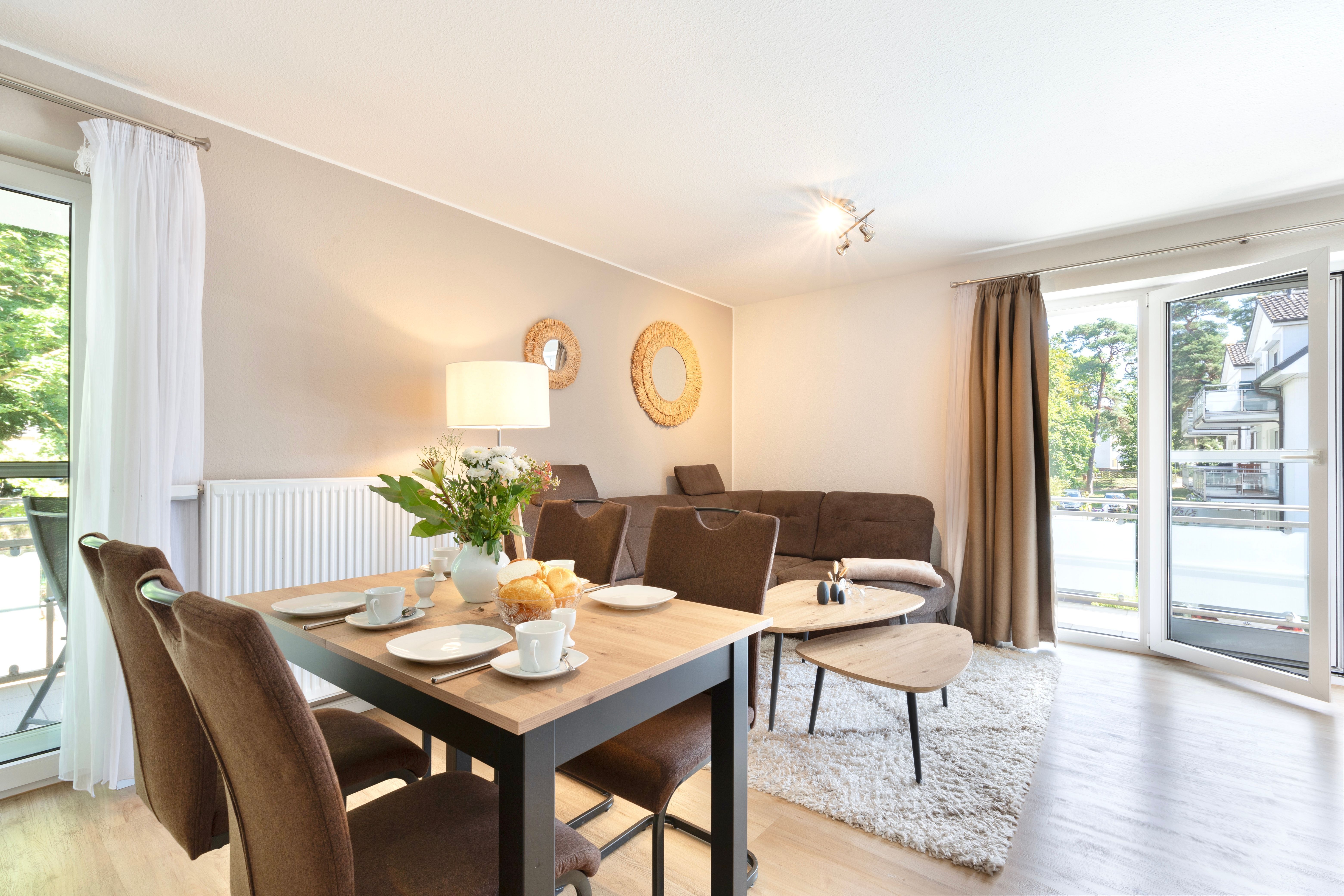 Das Appartementhaus mit seinen 18 Ferienwohnungen befindet sich am Ortseingang von Baabe, aber dennoch ruhig und zentral. Die Entfernung zur Bushaltestelle, Bahnhof und Supermarkt beträgt ca. 100 m. Der feine Ostseestrand ist gut in 5 Minuten zu erreichen. Ein Fahrradverleih befindet sich in der Nähe der Ferienwohnung. Die Nichtraucherferienwohnung Helene (für 2 bis 3 Personen) befindet sich in der 1. Etage und ist bequem per Fahrstuhl zu erreichen. Ein separater Ost- und Südbalkon laden bei Sonnenschein zum Verweilen ein, oder ermöglichen es Ihnen beim Grillen (Elektrogrill) den Tag ausklingen zu lassen. Ein abschließbarer Fahrradraum, sowie ein eigener Tiefgaragenstellplatz gehören zur Wohnung.