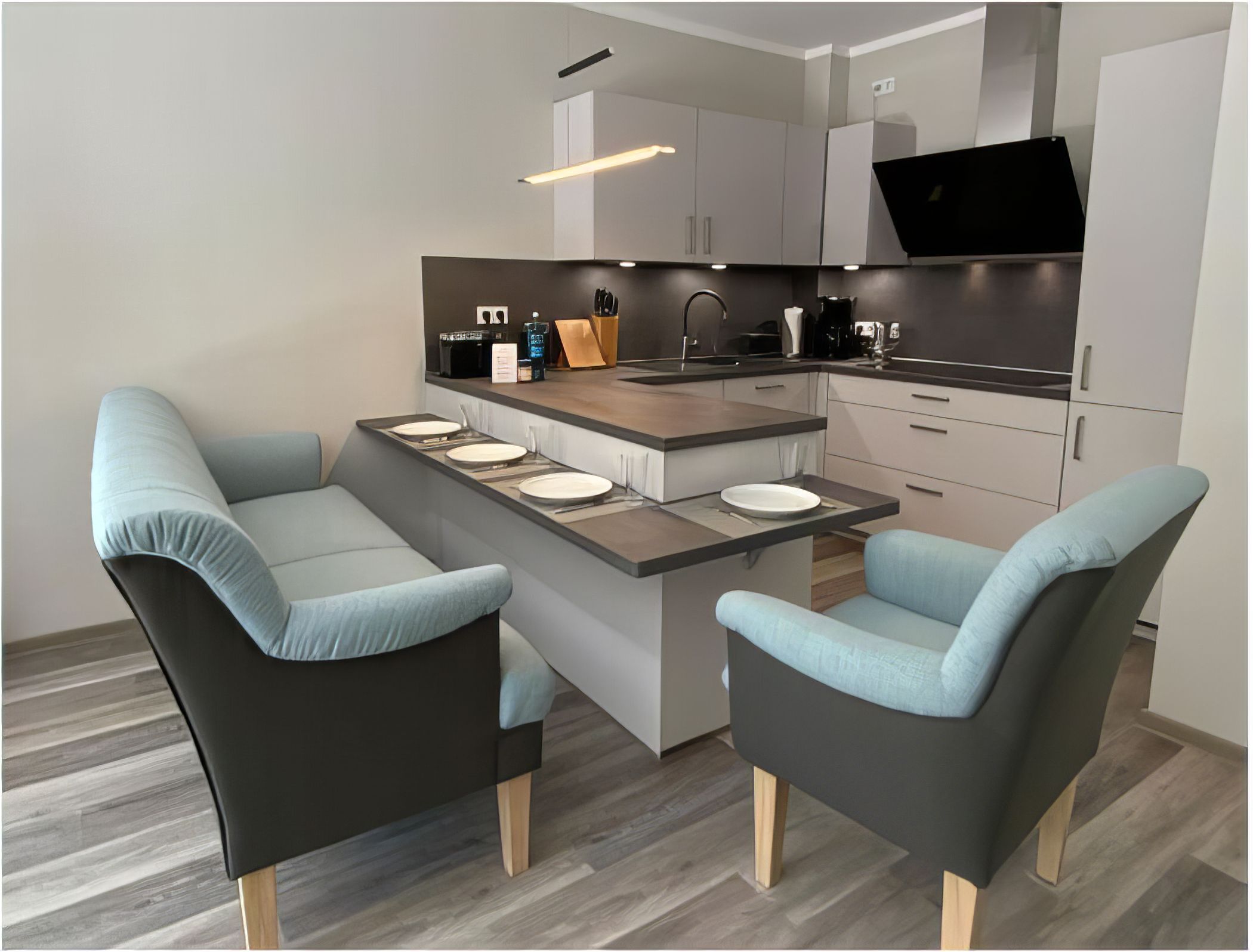 Ein PKW-Stellplatz steht direkt vor dem Haus zur Verfügung. In der Wohnung angekommen, erwartet Sie ein lichtdurchflutetes, modernes und freundliches Ambiente. Die Liebe für die Details spüren Sie von der ersten Sekunde und der Aufenthalt in unserer Ferienwohnung lässt Sie den Alltag vergessen. Die Wohnung verfügt über ein großzügiges Wohnzimmer mit einer Ausziehcouch, großem 55 Smart TV sowie einer Soundbar. Direkt am Wohnzimmer befindet sich die maßgeschneiderte offene Küche, welche mit Geschirr und Haushaltsgeräten ausgestattet ist. Für begeisterte Köche bleiben hier keine Wünsche offen. Die Ferienwohnung Magellan verfügt auch über eine Bangkirai - Holzterrasse, auf welcher Sie Ihr Frühstück genießen oder den Tag ausklingen lassen können. Sollte das Wetter einmal nicht Ihren Wünschen entsprechen, können Sie die Abende auch vor dem gemütlichen und romantischen Kaminofen im Wohnzimmer genießen.