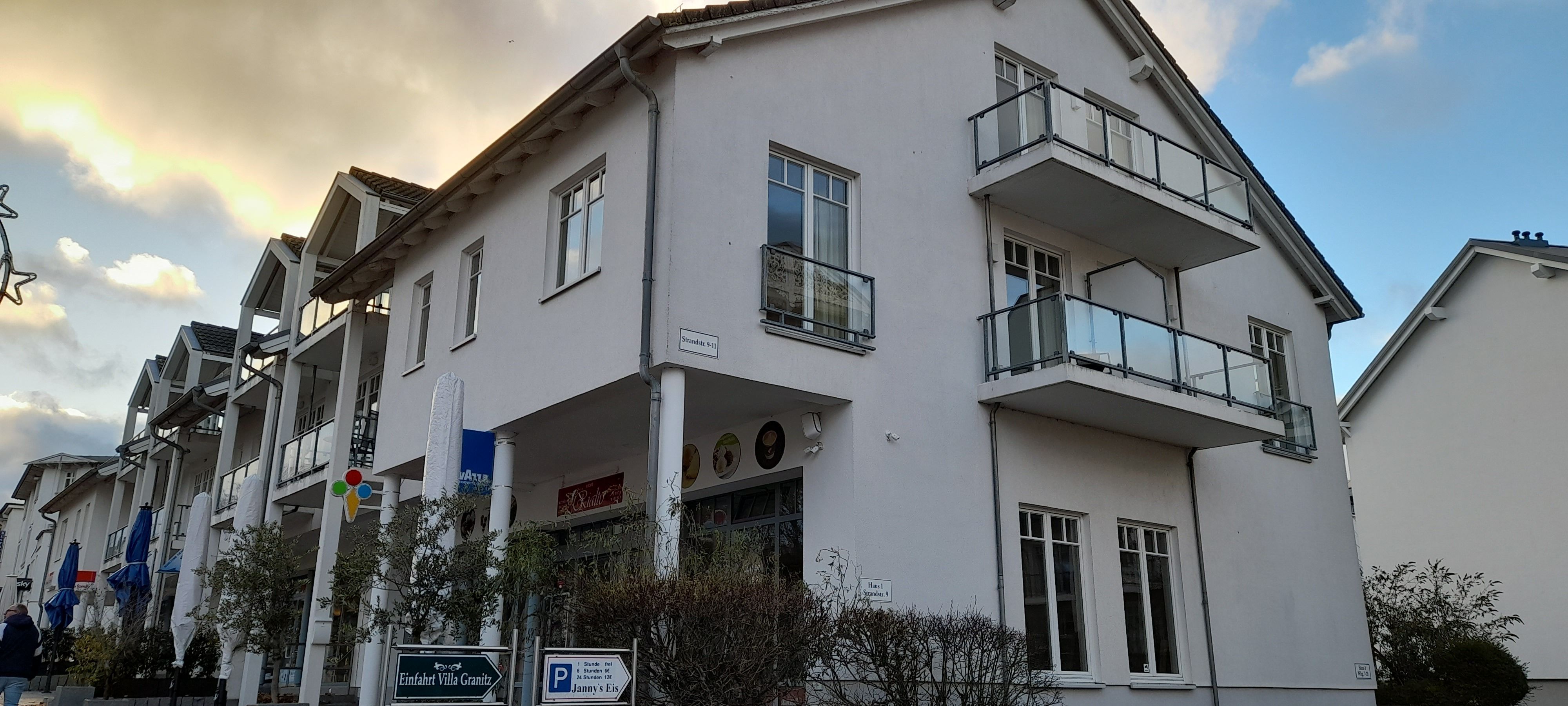 Die Appartementanlage Granitz besteht aus verschiedenen Gebäuden und liegt ruhig in Top-Lage zum Nordstrand und zur Waldpromenade, am Anfang der Strandstraße in Göhren. Eine Treppe im Garten führt vom Grundstück direkt zum Strandabgang. Erste Reihe zum Strand und zur Waldpromenade.