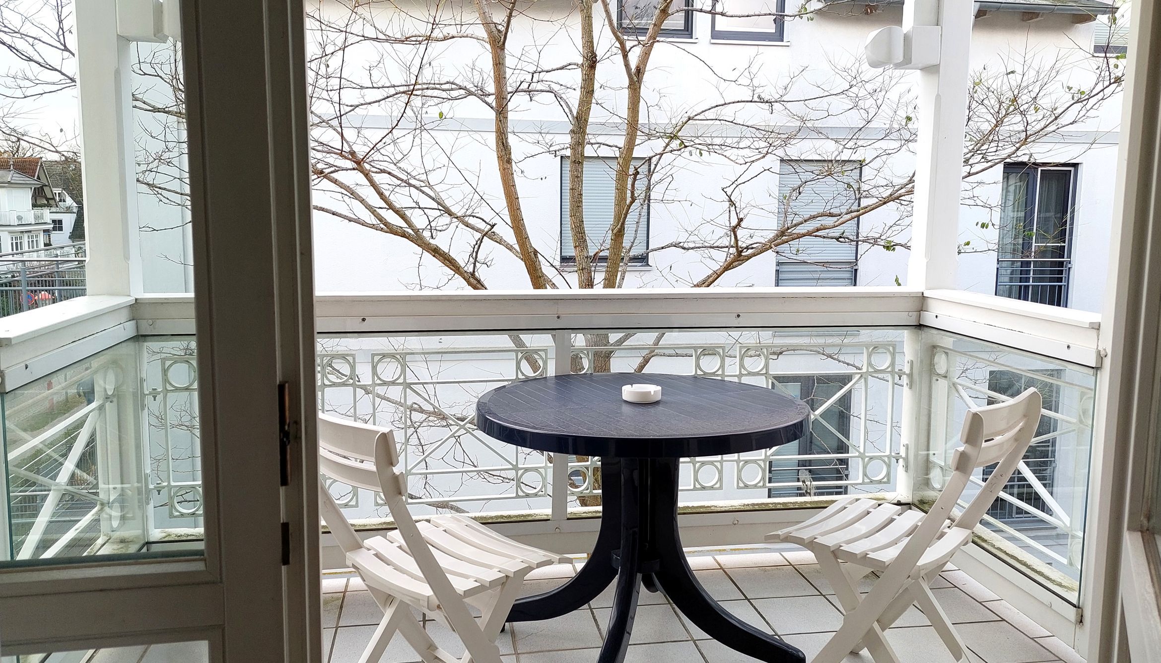 Vom Wohnbereich gelangen Sie auf die beiden möblierten Balkone. Einer zeigt nach Nordosten und der zweite nach Südwesten, sodass Sie der Sonne bequem folgen können.