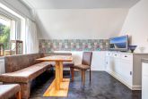 Angrenzend steht Ihnen ein Esstisch mit 2 Stühlen und einer Polstereckbank mit Flachbild TV zur Verfügung.