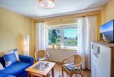 Das große, modern eingerichtete Schlafzimmer verfügt über ein Doppelbett sowie über beleuchtete Einbauschränke mit viel Stauraum. Ein zweites kleineres Zimmer kann beliebig als Wohn- oder Schlafzimmer genutzt werden (Ausziehcouch) und bietet zusätzlich einen zweiten TV mit DVD.