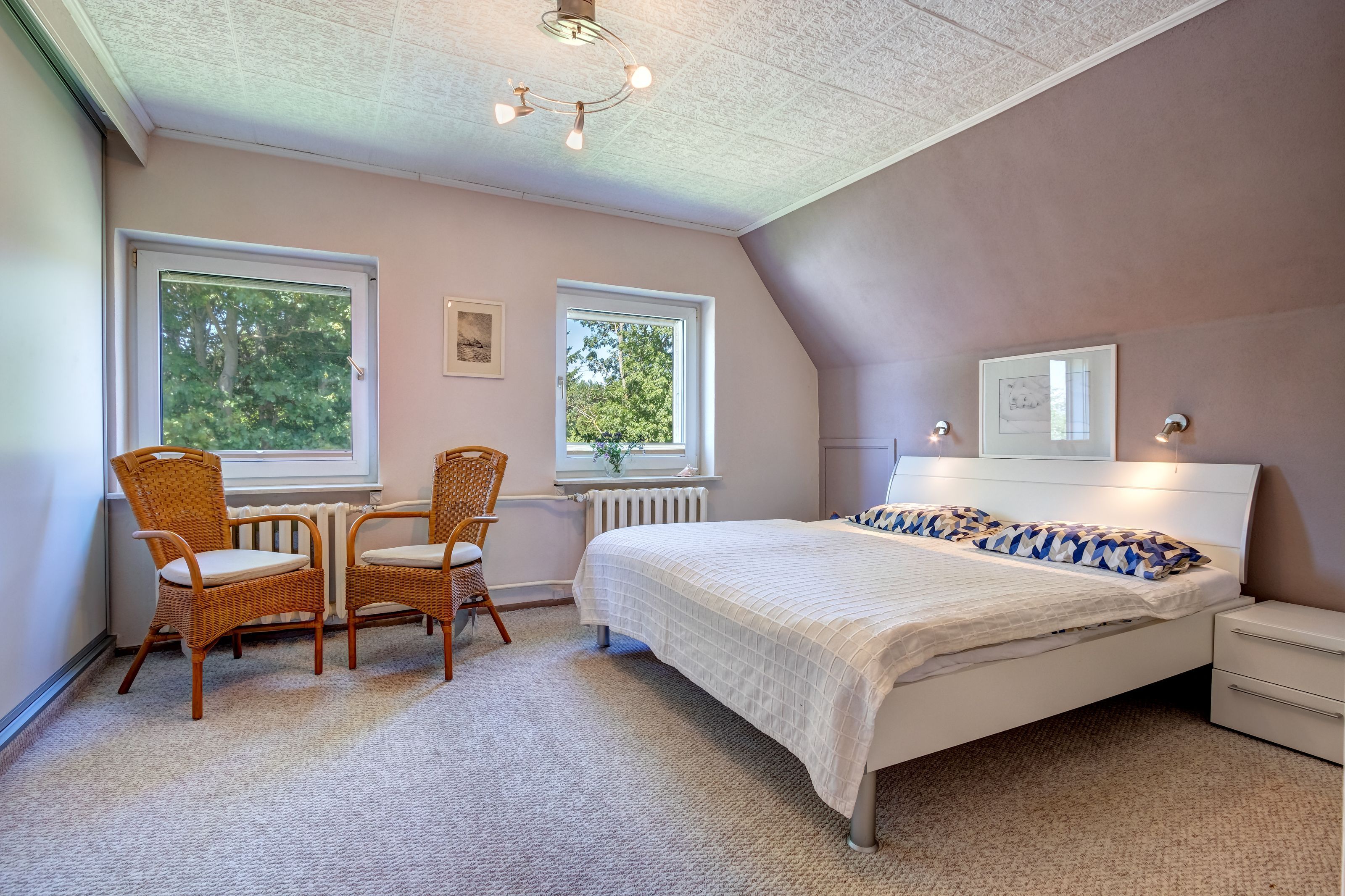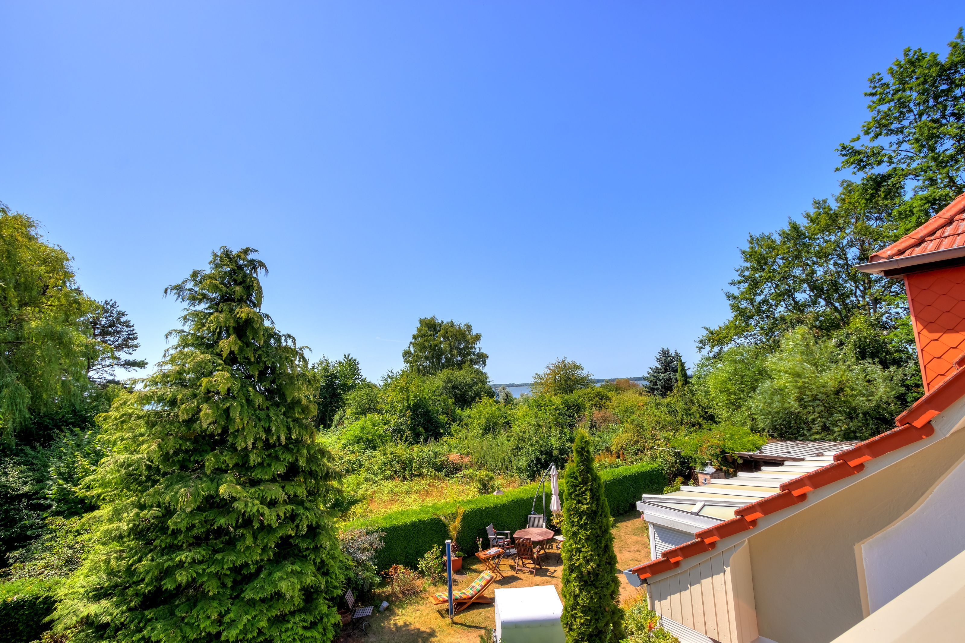 Von der Terrasse wie auch von den beiden Schlafzimmern haben Sie traumhaften Achterwasserblick. Alle Fenster sind mit elektrischen Rollläden versehen.