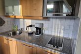 Die umfangreich ausgestattete Pantryküche verfügt über einen Kühlschrank mit Gefrierfach, Mikrowellenofen, einen 2-Platten Cerankochfeld, sowie Kaffeemaschine, Toaster und Wasserkocher.