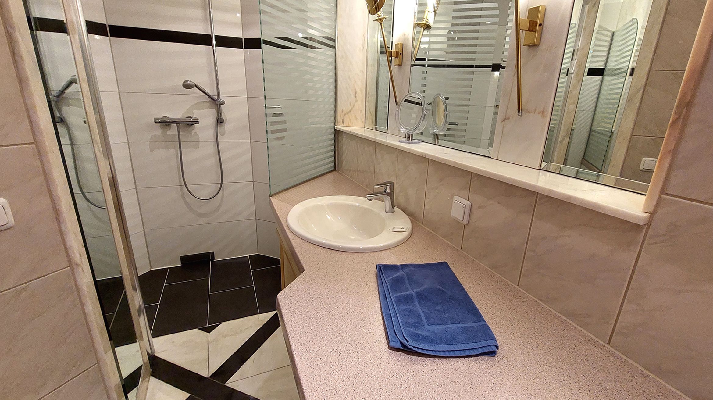 Die Ausstattung der Ferienwohnung umfasst eine Kaffeemaschine, eine Mikrowelle (samt Aufbackfunktion) sowie einen kleinen Geschirrspüler. Die offene Küche ist komplett ausgestattet und bietet alles, was Sie für die Zubereitung von Mahlzeiten benötigen.