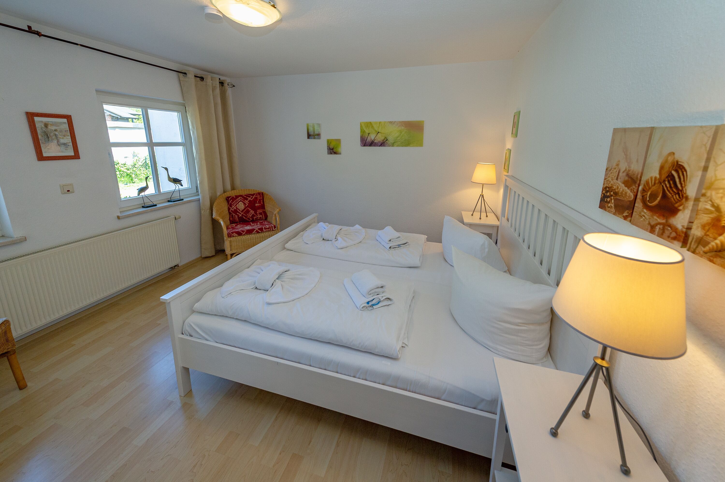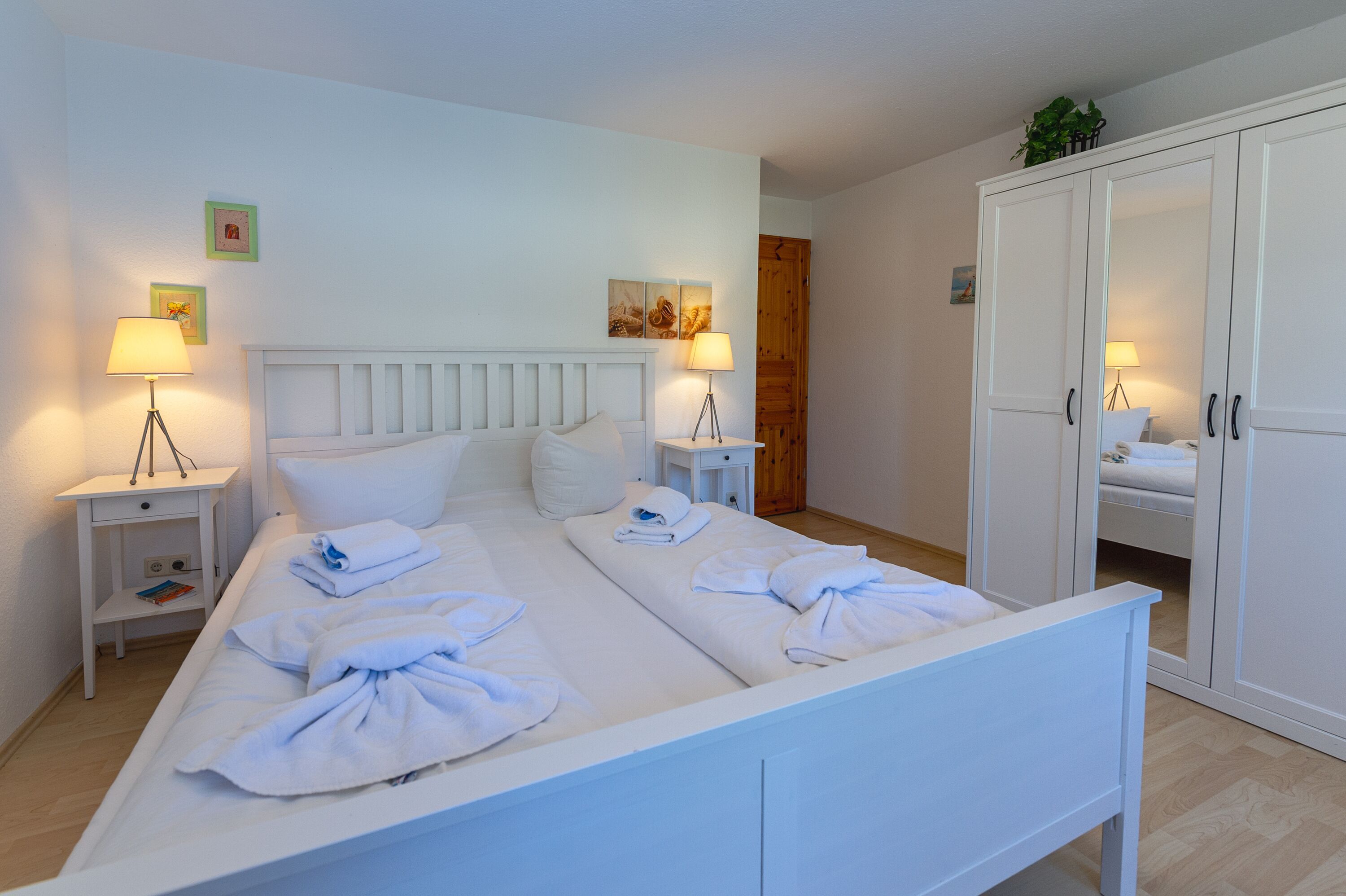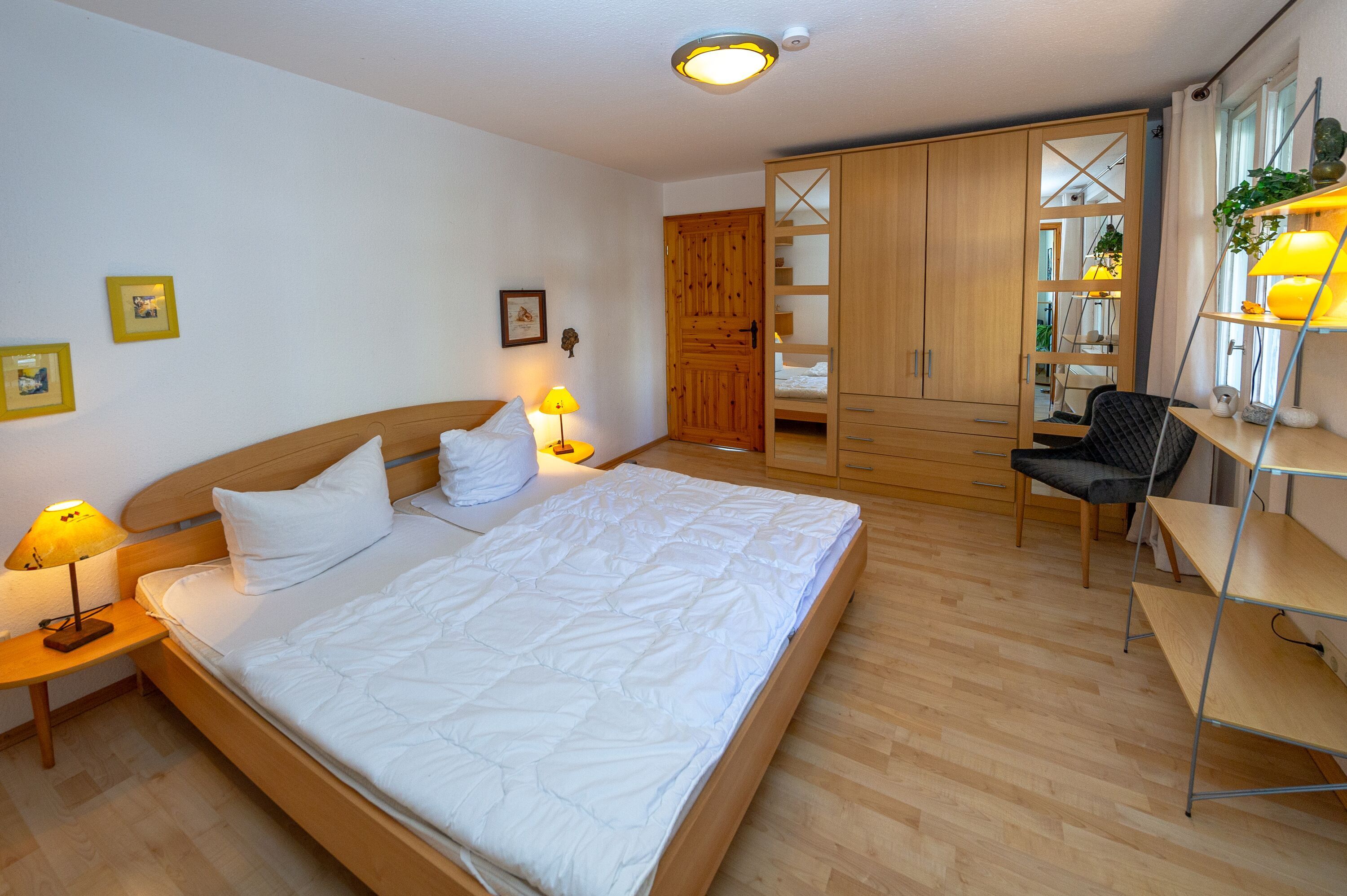 Die Fewo verfügt über drei separate Schlafzimmer mit jeweils einem Doppelbett. Eines der Schlafzimmer ist ein Durchgangszimmer zum zweiten Schlafzimmer.